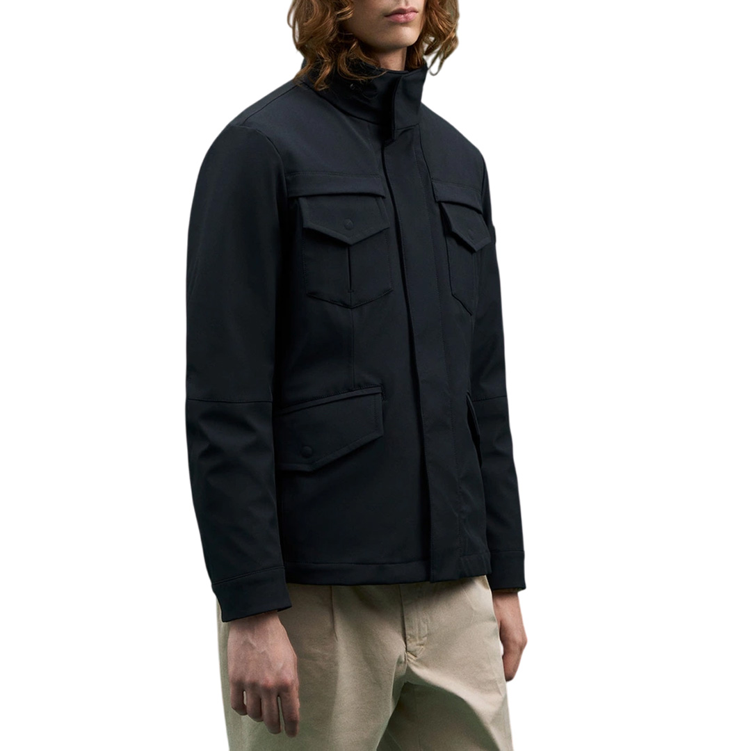 Giacca in tessuto tecnico con imbottitura naturale. Il capo presenta una superficie dall’aspetto mat, una mano strutturata e insieme morbida; è idrorepellente grazie a trattamento PFC Free che non impiega sostanze chimiche dannose per l’ambiente. Il modello reinterpreta la field jacket militare con un versatile look metropolitano, in pieno stile Peuterey. Collo alto con cappuccio estraibile. Chiusura nascosta con zip a doppio cursore e bottoni a pressione, presenti anche ai polsi e sulle patte delle quattro tasche, tasca interna a filetto. Un capo pensato per l’azione e il movimento, con tessuti tecnici e dettagli funzionali. Lunghezza: media Collo alto con cappuccio estraibile In microfibra di poliestere Idrorepellente con trattamento PFC Free