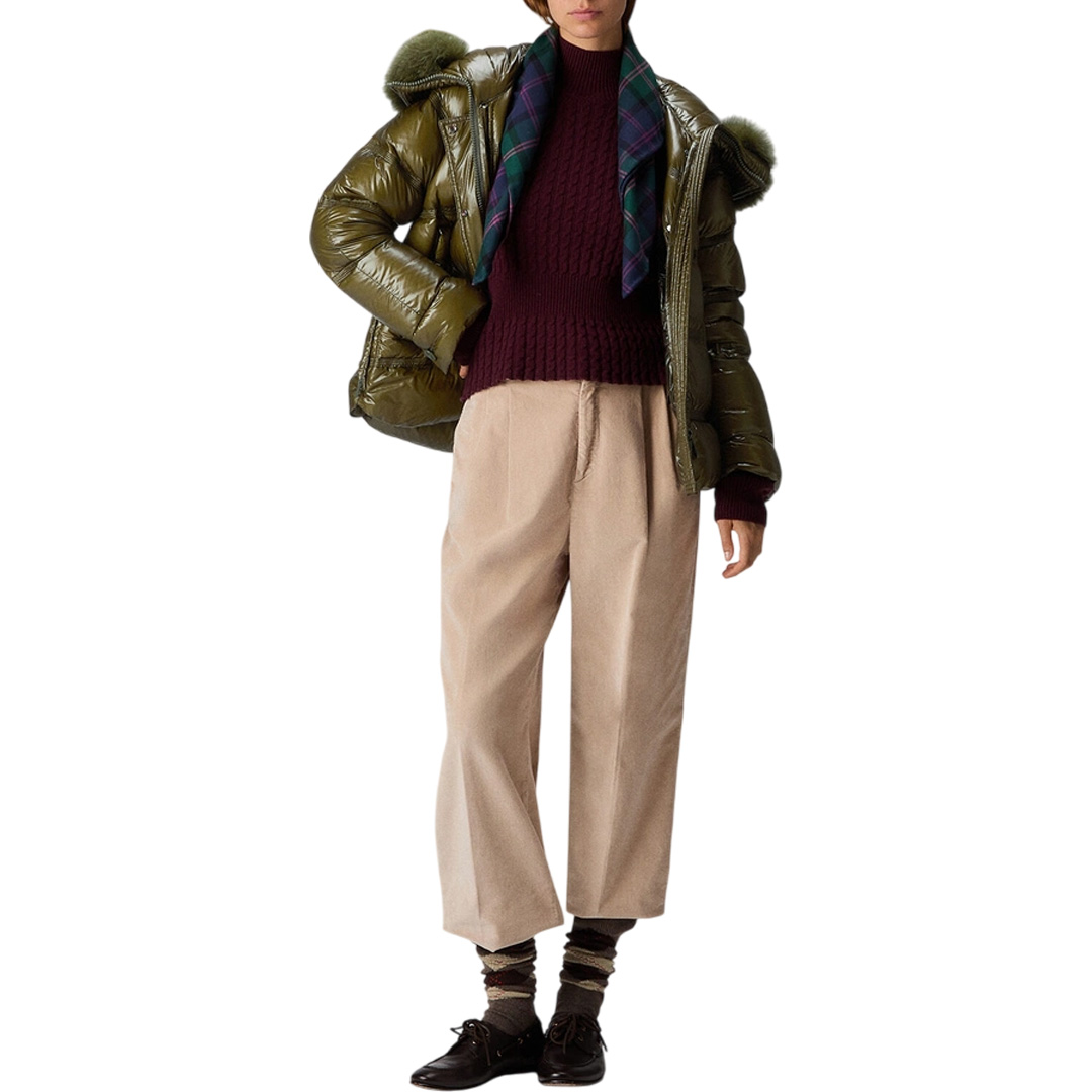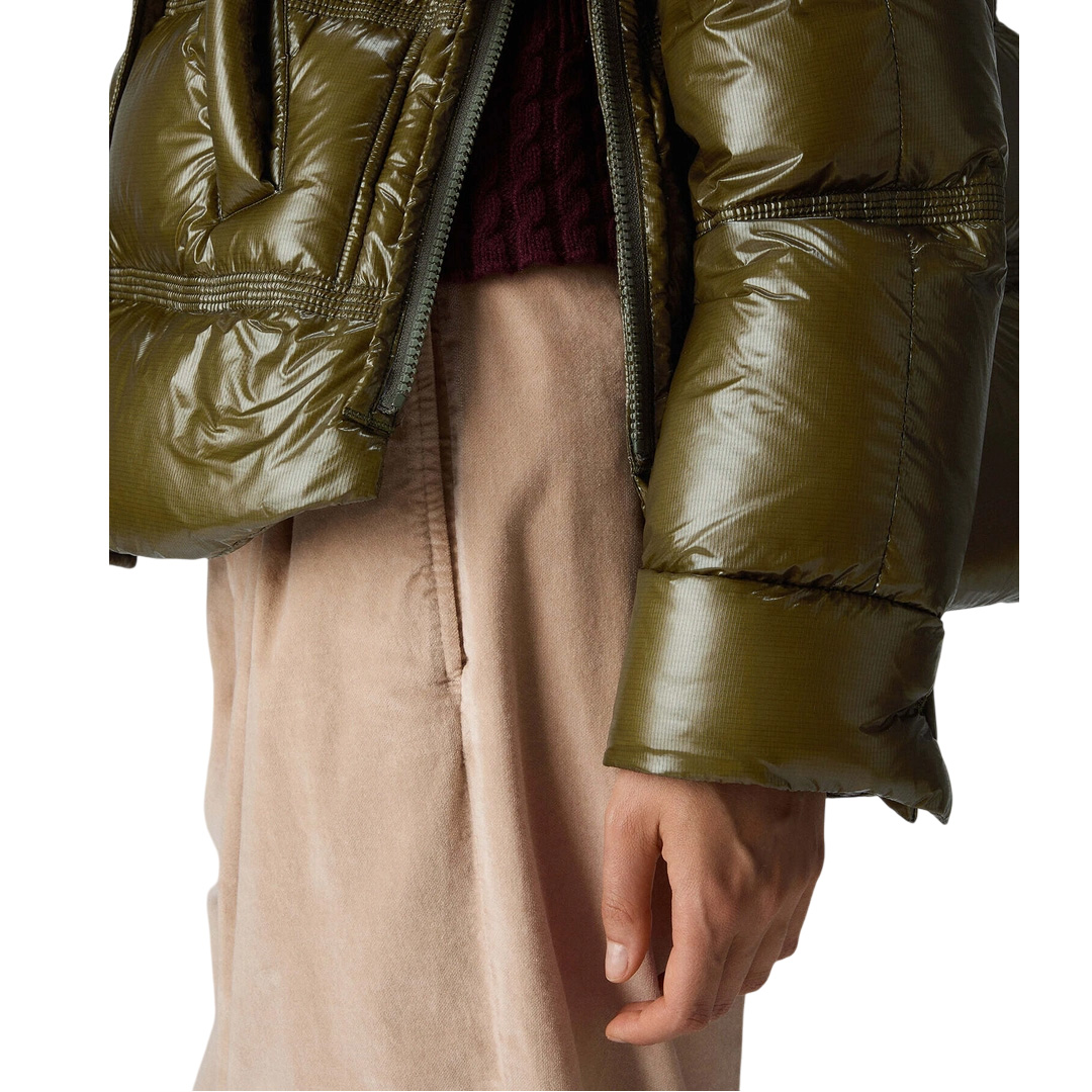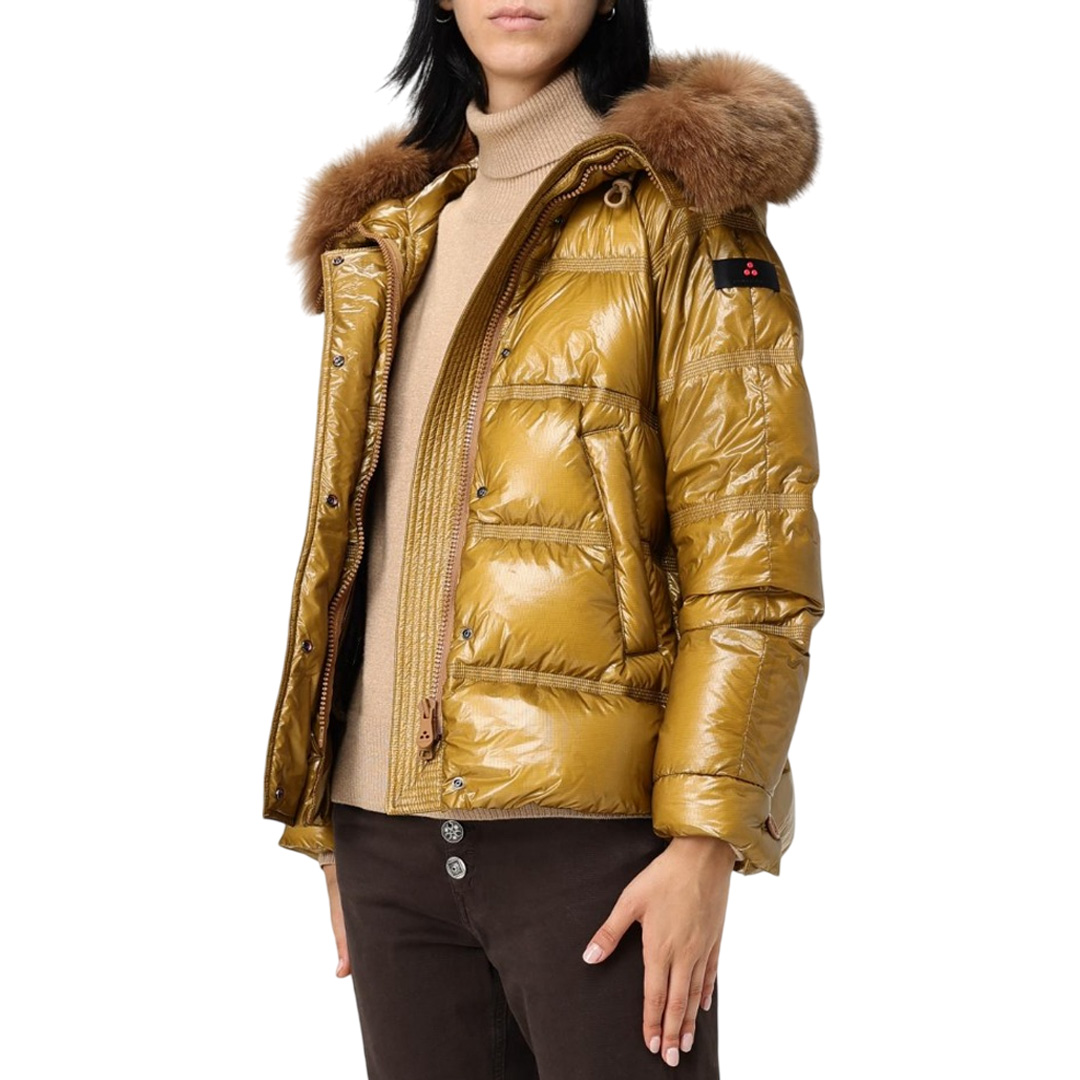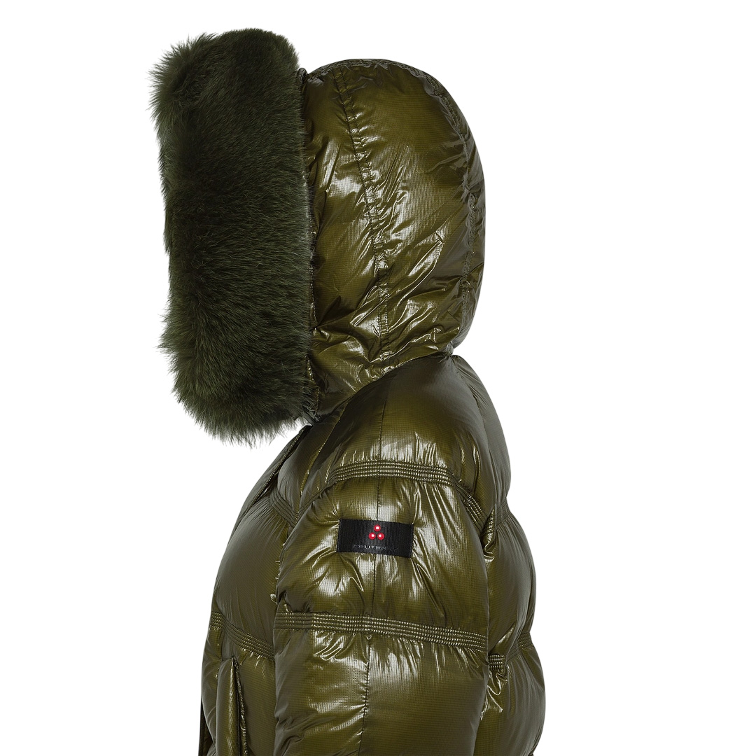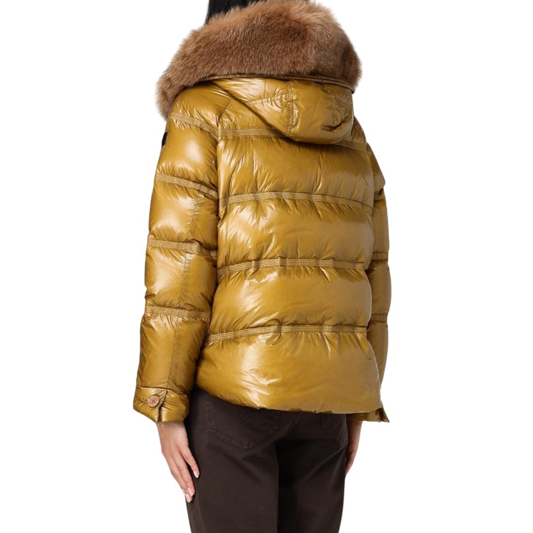 Piumino in nylon ripstop 7den dall’aspetto lucido. La ricchezza dei dettagli fa di questo capo un pezzo immancabile del guardaroba femminile della stagione invernale. Collo ampio, cappuccio a cratere con bordo di pelliccia di volpe staccabile, full zip centrale con doppio cursore coperta da paramontura, tasche laterali a filetto, due aperture con zip laterali ai fianchi e soffice imbottitura in piuma d’oca certificata. Un caldo abbraccio che protegge dal freddo e dalle intemperie. Idrorepellente e downproof. Chiusura con zip centrale nascosta Imbottitura in piuma d’oca certificata EDFA Cappuccio con bordo di pelliccia staccabile Idrorepellente Downproof Vestibilità: Regular
