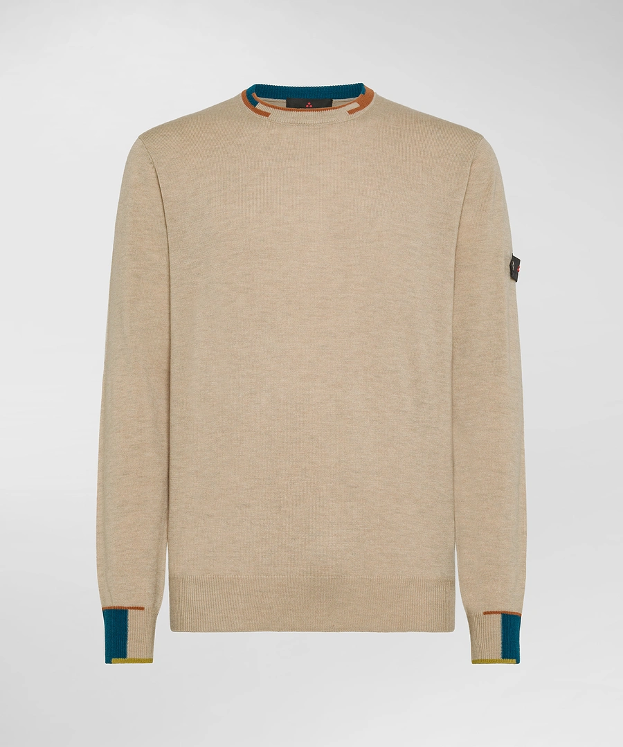 Maglia girocollo in tricot di misto lana e nylon, caratterizzata da dettagli a contrasto su collo, polsini e fondo che ne esaltano il carattere contemporaneo. La costruzione pulita e la palette raffinata la rendono un capo versatile, perfetto per aggiungere un tocco di personalità ai look quotidiani. La personalizzazione con l’iconico logo Peuterey, applicata sulla manica sinistra, completa il design con un tocco distintivo. Girocollo Dettagli a contrasto In tricot misto lana e nylon Personalizzazione su manica