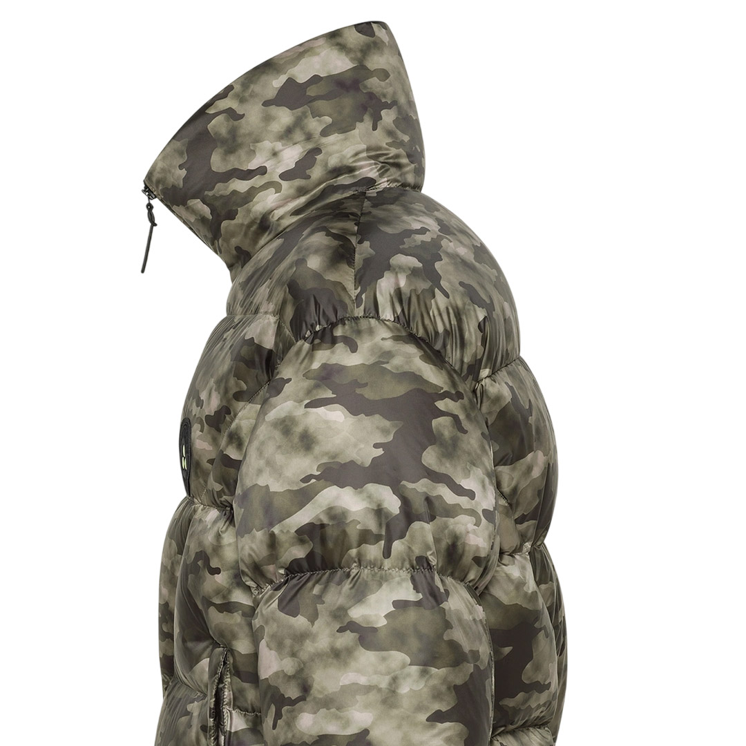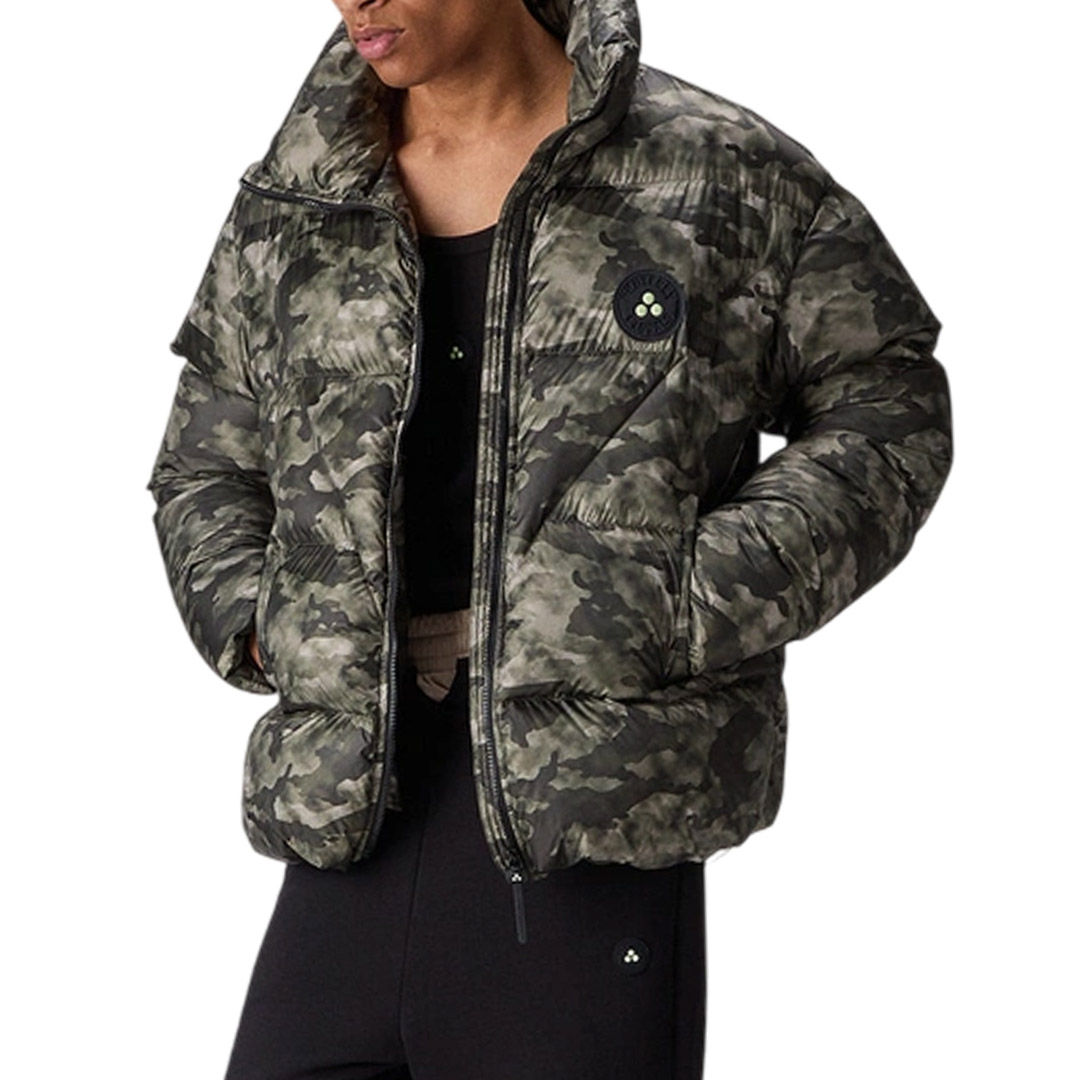 Un capo statement dalla forte personalità, parte della capsule Peuterey Plurals AI25 in collaborazione con Tony Effe. Realizzata in 100% poliestere riciclato post-consumo, questa puffer jacket dal collo alto presenta una texture semiopaca, una mano fluida e morbida, e una struttura super compatta. L’imbottitura in piuma naturale certificata assicura calore leggero, mentre il trattamento idrorepellente PFC Free, protegge da imprevisti meteo senza l’impiego di sostanze chimiche dannose per l’ambiente. Le maxi trapunte, la zip centrale nera a doppio cursore, le tasche laterali a filetto e il patch con logo tondo sul petto definiscono un design essenziale ma distintivo. L’iconica fantasia camouflage dona a questo capo un look bold, per chi vive la città con carattere e non ha bisogno di uniformarsi. Per la stagione AI25, Peuterey Plurals e Tony Effe – icona della trap e della moda italiana - riscrivono le regole del guardaroba urbano con attitudine e consapevolezza. Patch tondo con logo Linea Peuterey Plurals x Tony Effe Genderless Fit over Fantasia camouflage Trattamento idrorepellente PFC free Imbottitura in piuma naturale certificata Vestibilità: Over