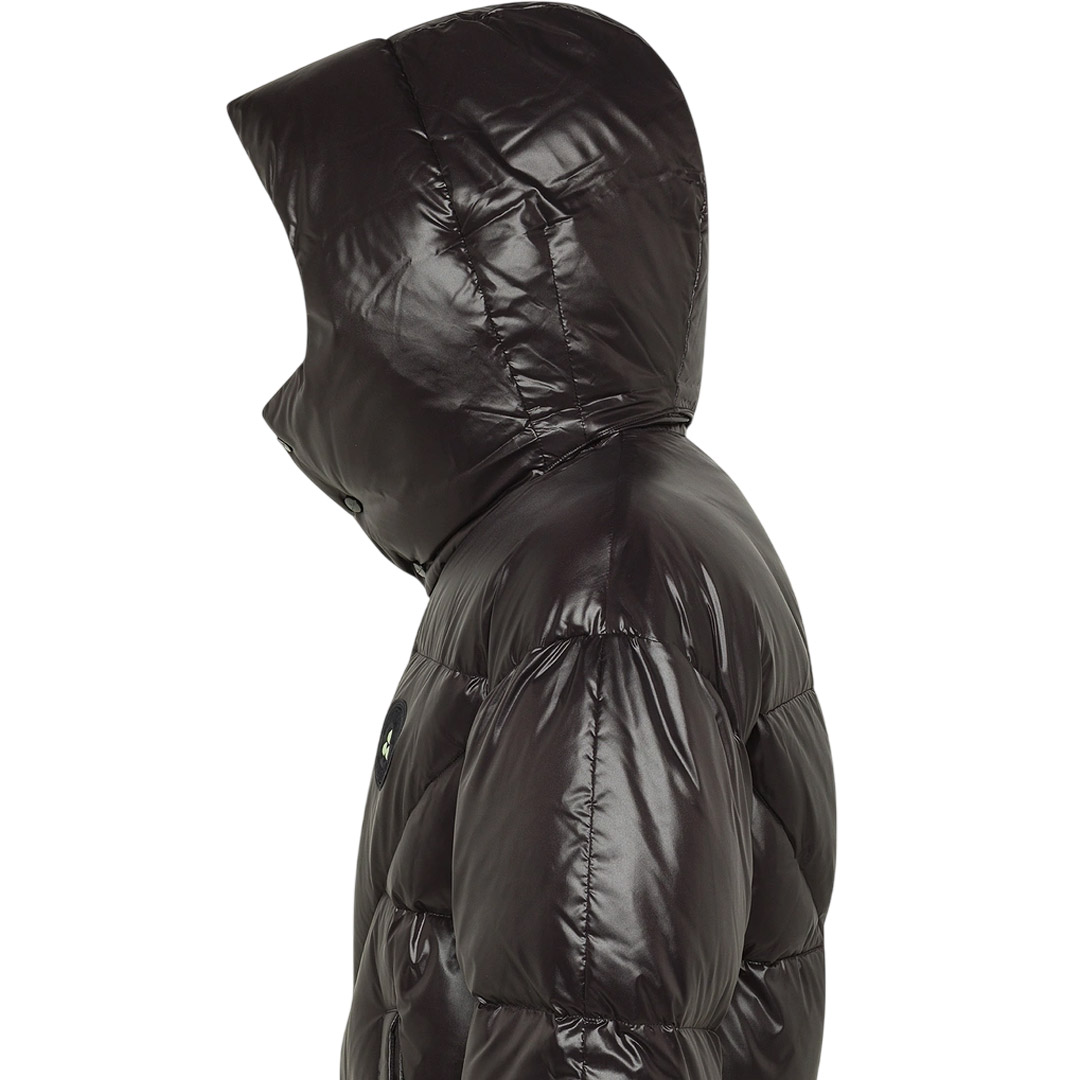 Puffer jacket genderless con maxi trapunte, realizzato in nylon lakkè lucido, lavorato con speciali trattamenti termici che ne esaltano la brillantezza e conferiscono una mano fluida e morbida. Il cappuccio, con bottoni a pressione, richiama la forma di una balaclava e garantisce massima protezione quando completamente chiuso: un dettaglio bold, perfetto per affrontare la città con personalità. La zip nera centrale è coperta da patta, mentre la coulisse in vita e il maxi logo tondo sul petto aggiungono un tocco street. L’imbottitura in piuma naturale certificata offre calore e leggerezza, mentre il tessuto è wind resistant e water repellent con trattamento PFC Free, per affrontare ogni clima con sicurezza. Parte della capsule AI25 Peuterey Plurals x Tony Effe, questo capo unisce lo stile urban e provocatorio dell’artista romano con il know-how tecnico e l’estetica contemporary outdoor del brand. Una collaborazione esclusiva, per un guardaroba dal carattere forte e riconoscibile. Personalizzazione tonda con logo Linea Peuterey Plurals x Tony Effe Genderless Trattamento idrorepellente PFC free Cappuccio con bottoni a pressione In nylon lucido Windresistant Imbottitura in piuma naturale certificata Vestibilità: Over