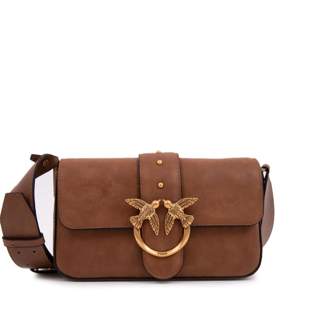 Mini Love Bag Slouchy in pelle liscia effetto nuvolato dalla linea rettagolare allungata e morbida. Chiusura a bottone automatico con fibbia Love Birds e listino con borchie in metallo applicate sulla patta. Tracolla spessa inamovibile in pelle in coordinato. Interno foderato in drill di cotone con tasca a parete in pelle. Altezza: 13 cm, Larghezza: 7 cm, Lunghezza: 22 cm