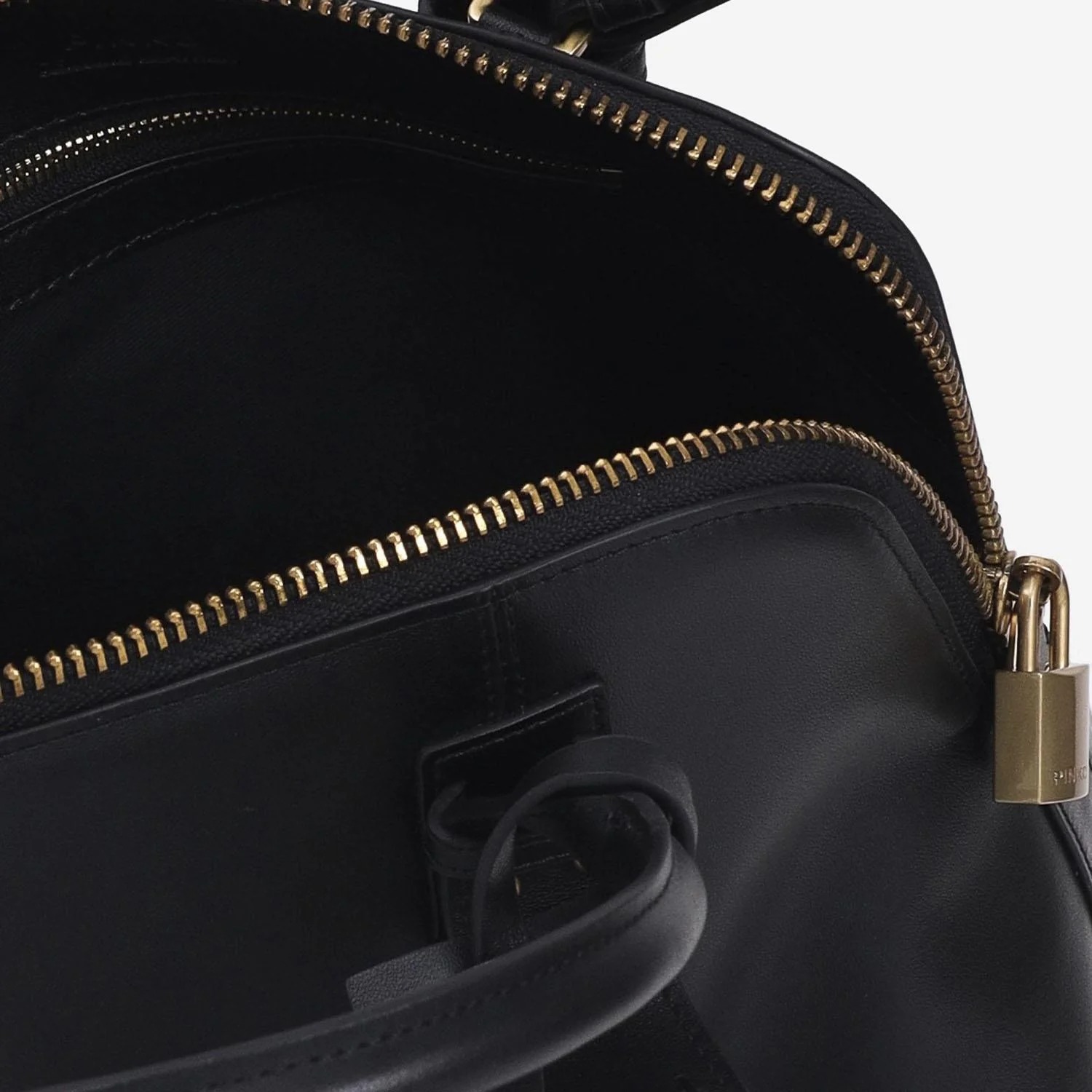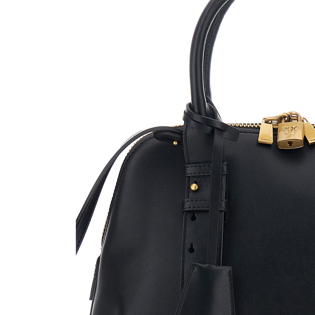 Borsa a mano Escape Bag modello bowling di dimensione media, realizzata interamente in morbida pelle. Caratterizzata dalla tracolla regolabile e rimovibile in pelle e da un doppio manico per la portata a mano o a spalla, la borsa risulta estremamente versatile e pratica. Il modello presenta un lucchetto funzionale che si apre e chiude grazie a una chiave contenuta nel charm abbinato, mentre il tocco finale è dato dalla piccola placca con logo Love Birds, portavoce dell'inimitabile stile del brand. La chiusura superiore con zip rivela un interno foderato in cotone e dotato di una una tasca a parete, anch'essa chiusa con zip. Attiva la tua borsa PINKO: verifica l'autenticità del tuo prodotto e accedi all'esperienza personalizzata avvicinando il tuo smartphone al ricamo Love Birds che trovi sul retro della borsa! Altezza: 23 cm Larghezza: 13 cm Lunghezza: 30 cm