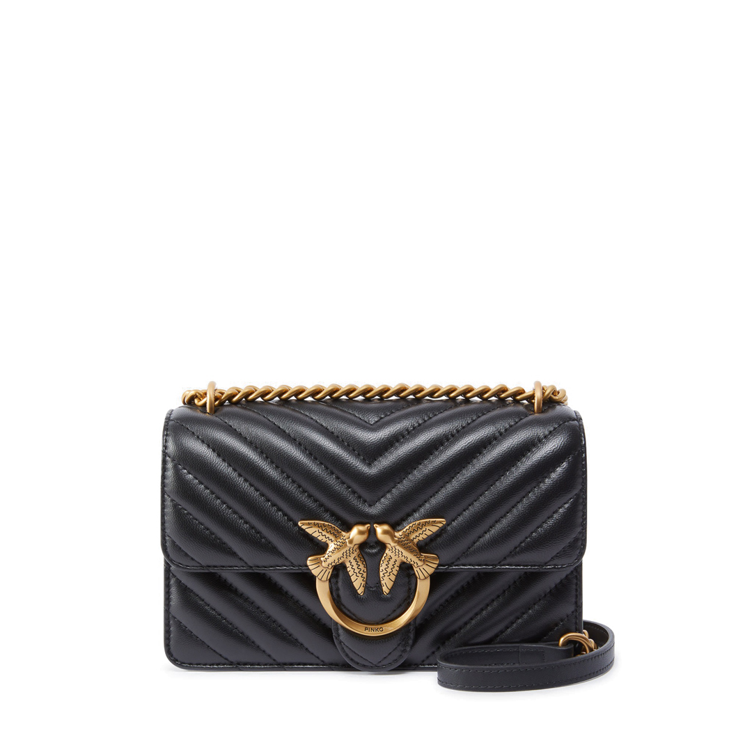 Piccola borsa a tracolla Mini Love Bag in nappa matelassé con caratteristico disegno chevron a punta. La borsa è completa di tracolla che combina la classica catena rotonda al pratico spallaccio in pelle regolabile, ed è possibile doppiare la tracolla e indossare la borsa a spalla. La chiusura con patta è completata dall'iconica fibbia Love Birds Diamond Cut in metallo. L'interno è foderato in tessuto effetto scamosciato e comprende tramezza chiusa con zip e pratica tasca a parete in pelle. Attiva la tua borsa PINKO: verifica l'autenticità del tuo prodotto e accedi all'esperienza personalizzata avvicinando il tuo smartphone al ricamo Love Birds che trovi sul retro della borsa! Altezza: 13 cm Larghezza: 6 cm Lunghezza: 21 cm