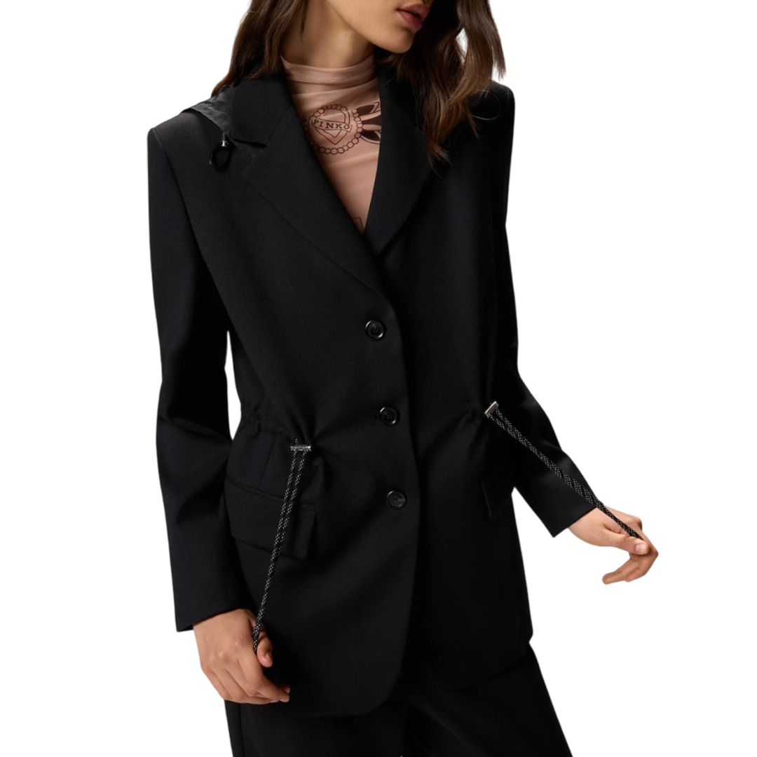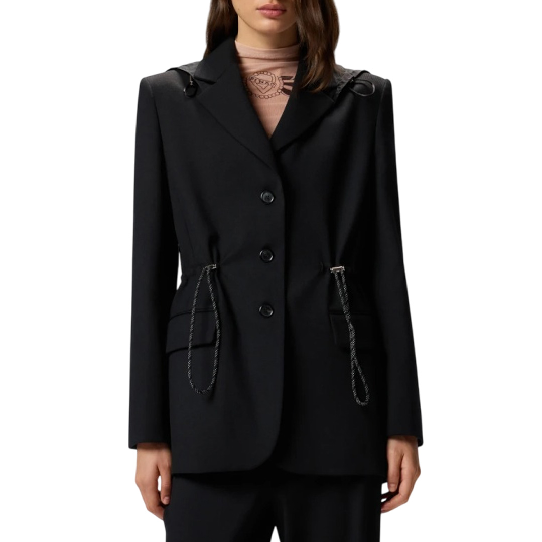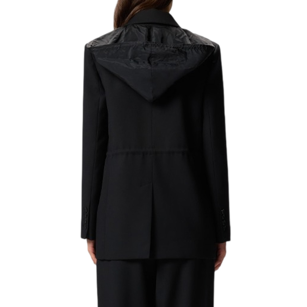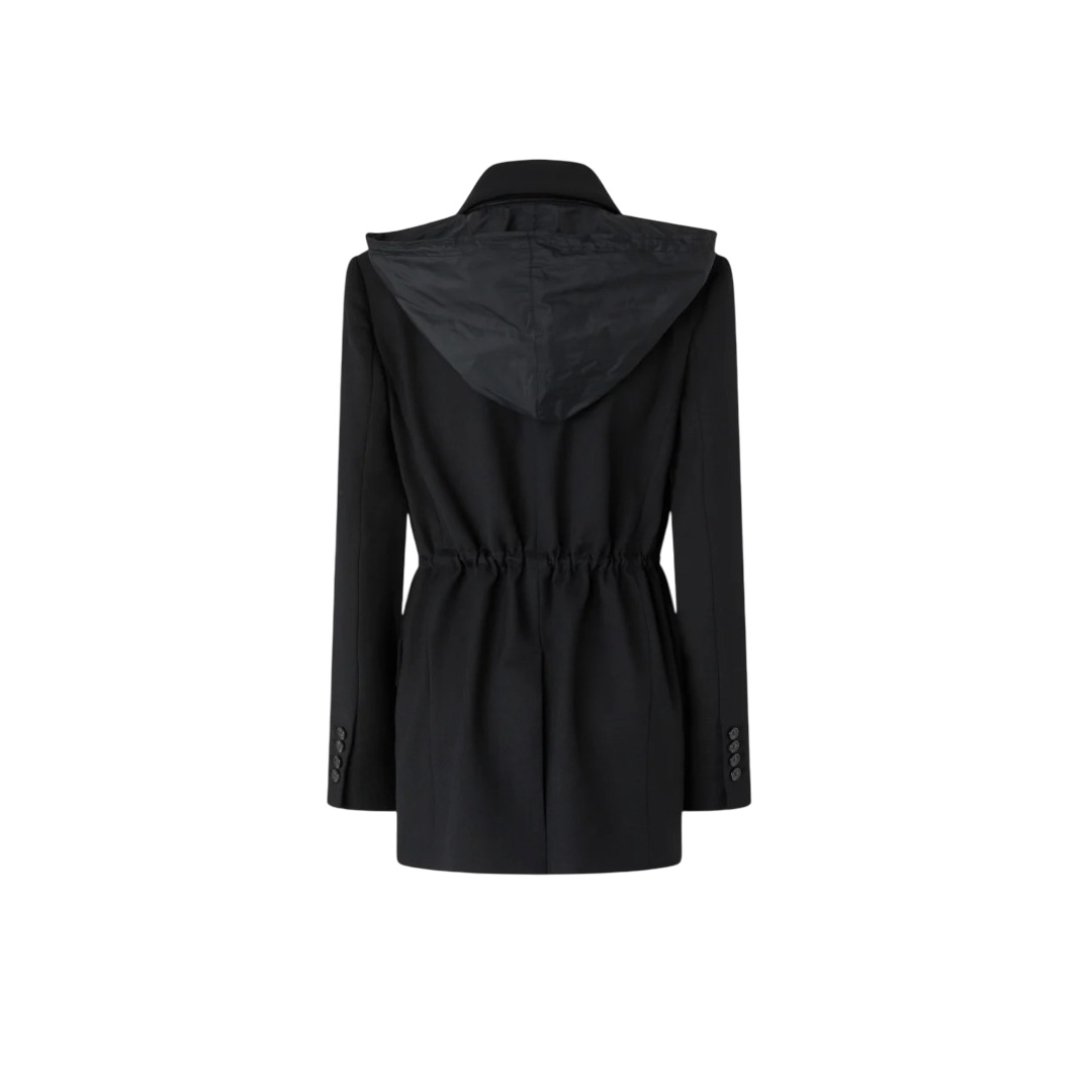 Giacca monopetto con cappuccio dalla silhouette sfiancata, realizzata in misto lana con armatura diagonale dalla mano smerigliata e fluida. Scopri una nuova versione del blazer strutturato e d'ispirazione classica, valorizzato da spalle over anni '80-'90 e dal punto vita segnato da una coulisse interna stile trekking per creare contrasto nella figura. Se eri alla ricerca di un modello per ultimare i tuoi outfit da giorno con un tocco originale, puoi smettere di cercare!