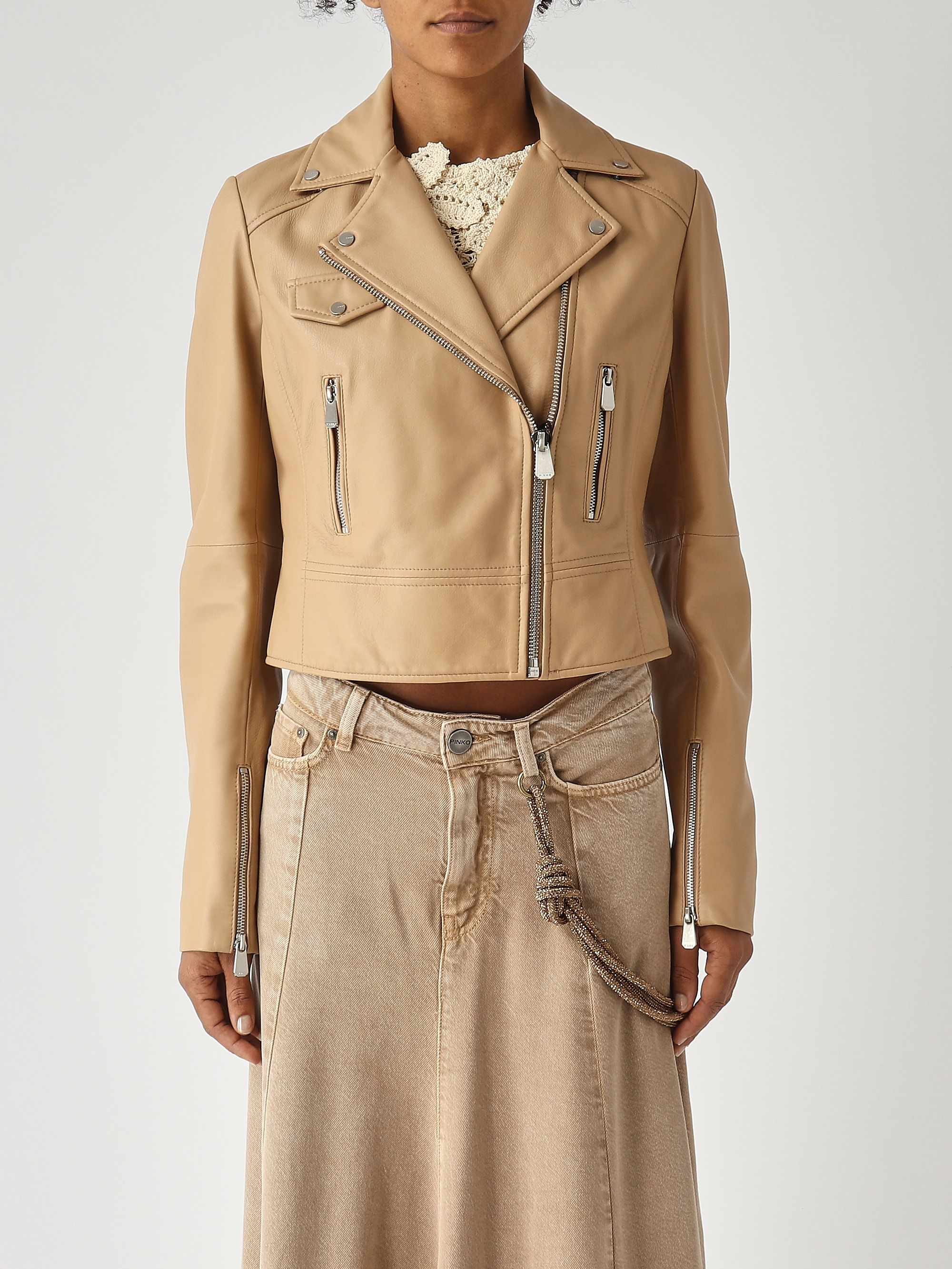Giacca chiodo stile biker realizzata in morbida nappa e dotata di chiusura con zip decentrata. Il capo è caratterizzato da un ampio revers con bottoni, tasche verticali con zip sul davanti, un taschino sul petto con patta e bottone e comode aperture con zip ai polsi. Il design è rifinito dall'iconico logo Love Birds in rilievo sul retro. Questo giubbino è una reinterpretazione contemporanea del classico chiodo biker in pelle, ed è perfetto per completare i tuoi look con un tocco di grinta che non rinuncia alla femminilità. - NEW SENSIBILE CHIODO