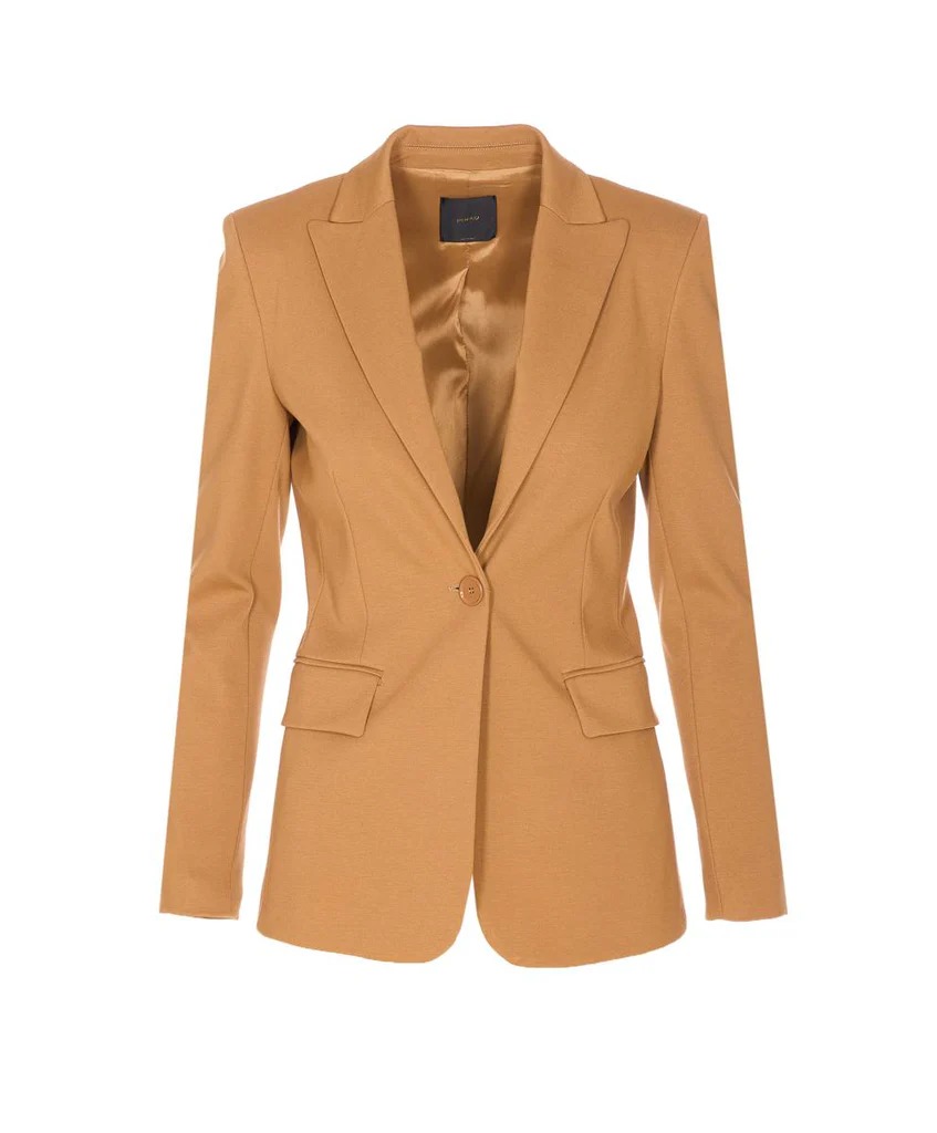 Giacca blazer monopetto dalla linea sfiancata in tessuto tecnico di viscosa stretch lavorata a punto stoffa. Il capo è rifinito da dettagli dal gusto sartoriale, come le pinces che accompagnano ed enfatizzano la figura, e da elementi classici come il collo a revers e le tasche con pattina. Abbina il blazer con il pantalone nello stesso tessuto per un effetto tailleur, oppure indossa una camicia per un look formale, ma non troppo.