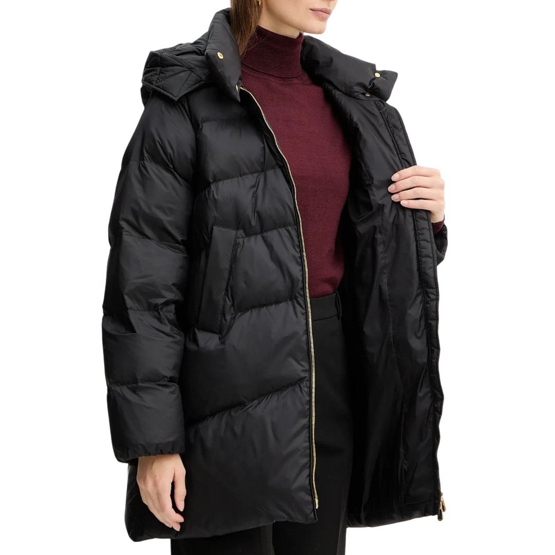 Piumino imbottito realizzato in tela tecnica semilucida con trapuntatura orizzontale. Il capo è dotato di collo alto con cappuccio rimovibile, maniche lunghe e tasche a filetto. Chiusura con zip davanti. Affronta le temperature più rigide con questo capo pronto a regalarti un morbido abbraccio.