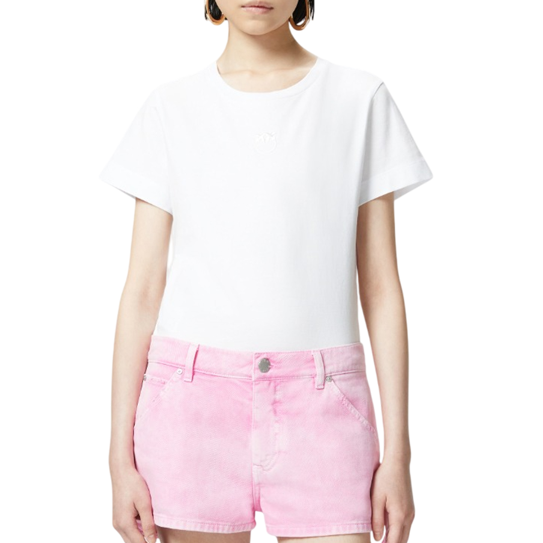 T-shirt da donna a maniche corte in jersey di cotone effetto old wash con logo Love Birds effetto ricamato davanti. Questa t-shirt rappresenta un vero e proprio passepartout in puro stile PINKO: perfetta da indossare in qualunque occasione, dalle più formali alle più sporty, aggiungendo un tocco femminile e iconico.