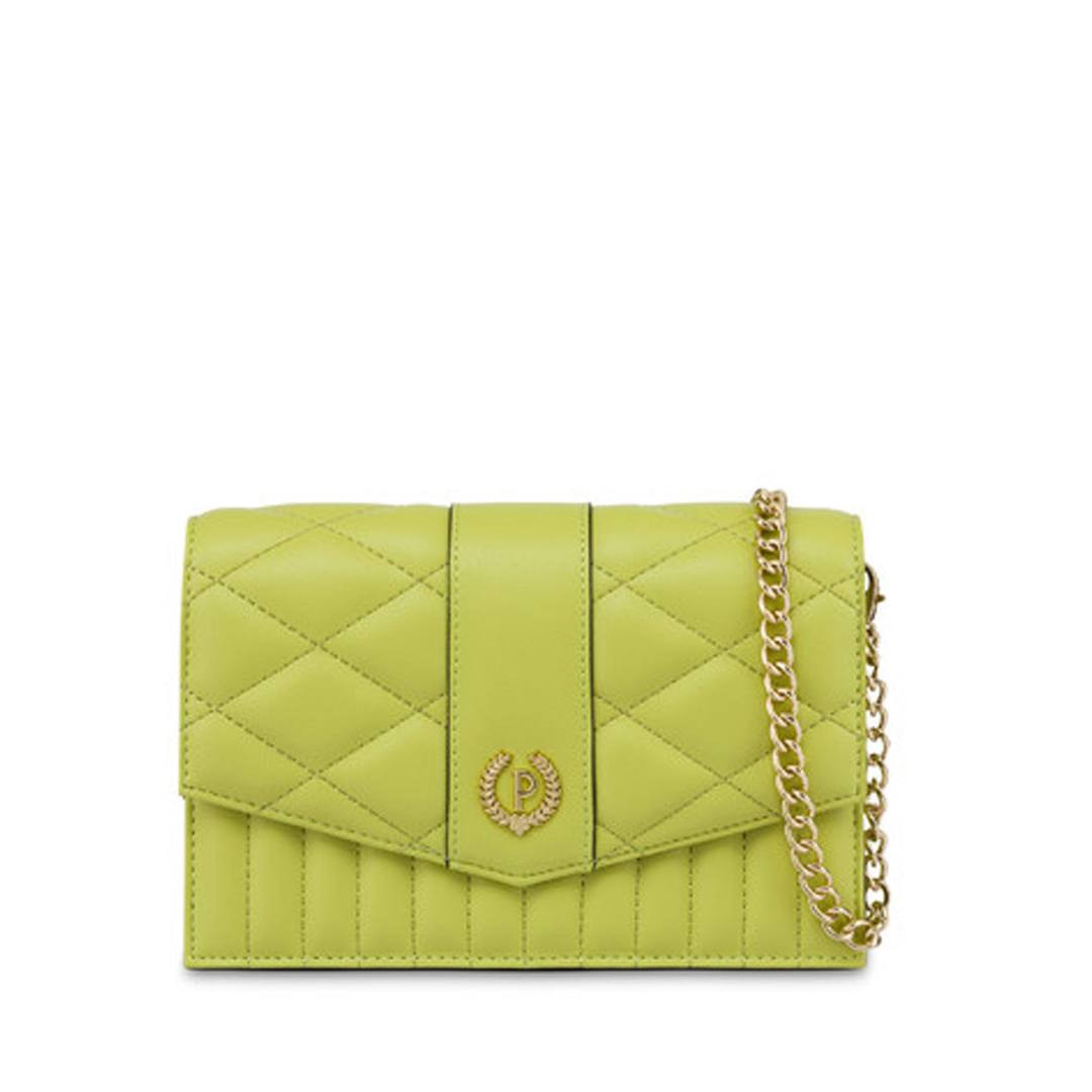 Pochette con lavorazione matelassé versatile, pratica e multifunzionale. Catena amovibile per portabilità a spalla o a bandoliera. All'interno, è dotata di uno specchietto beauty e di vani per carte. Tre scomparti interni. Matelassé a rombi combinato a matelassé dal taglio verticale Catena amovibile Logo P-alloro in metallo Chiusura magnetica 4 tasche per carte Interno foderato Dimensioni: 12X19X6