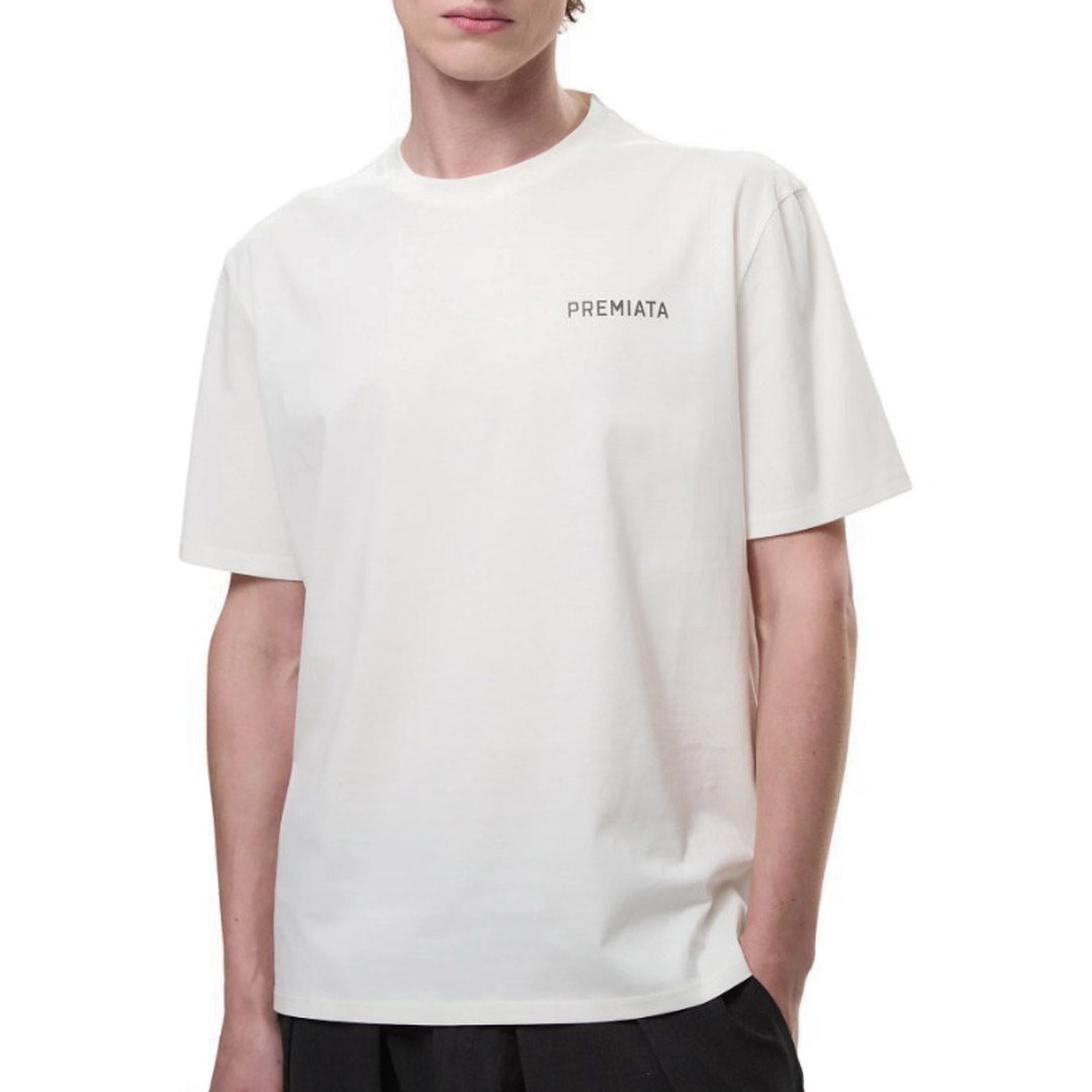 T-shirt in jersey di cotone morbido, con spacchi sul fondo e orlo dietro più lungo. Dettaglio travetta in filo a contrasto colore, logo "PREMIATA" stampato sul petto a sx. Il nostro segno distintivo a 3 fori sul centro dietro e realizzato a laser e fissato con transfer a caldo in PU