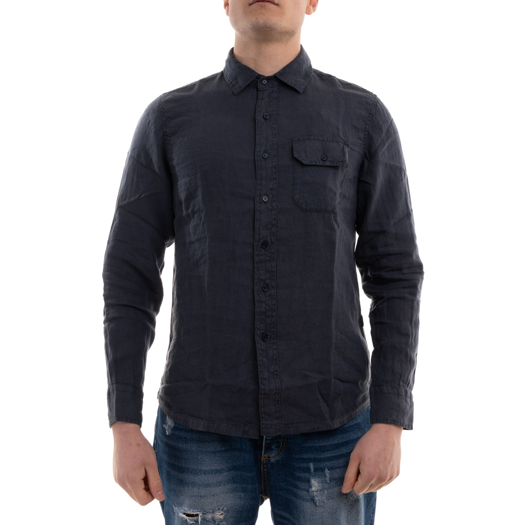 Camicia uomo in puro lino tinto in capo, regular fit, colletto classico, carré sul retro, una tasca con pattina e bottone applicatasul petto, etichetta REPLAY sul lato, polsi con bottone singolo, fondo stondato, chiusura con bottoni a quattro fori.