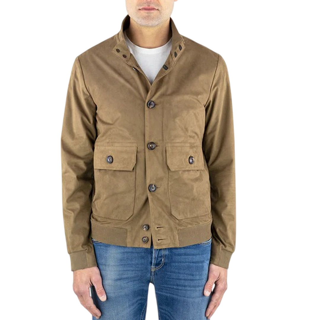 Realizzata in un morbidissimo micro velour a effetto suede, questa giacca interpreta un’eleganza rilassata e contemporanea. Il tessuto, animal free e straordinariamente piacevole al tatto, regala un comfort avvolgente e un’estetica casual classica e sofisticata, perfetta per accompagnare con stile i momenti informali della mezza stagione. L’abbottonatura in corno chiude con raffinatezza il colletto verticale rifinito a costine elasticizzate, il davanti e le alette delle due ampie tasche applicate, doppiate da pratiche tasche laterali invisibili. All’interno, il taschino chiuso da zip invisibile è impreziosito dalla nastratura arancio fluo e dalla tag a cuore “Made with love, designed in Tuscany”, che racconta l’attenzione per i dettagli e la ricerca della qualità. Completata dal logo nero a microiniezione sulla manica sinistra, questa giacca dal fit regolare si distingue per la sua allure senza tempo: un capo versatile e raffinato, ideale da abbinare a un paio di chino o ai classici bermuda per un’eleganza disinvolta e naturalmente contemporanea.