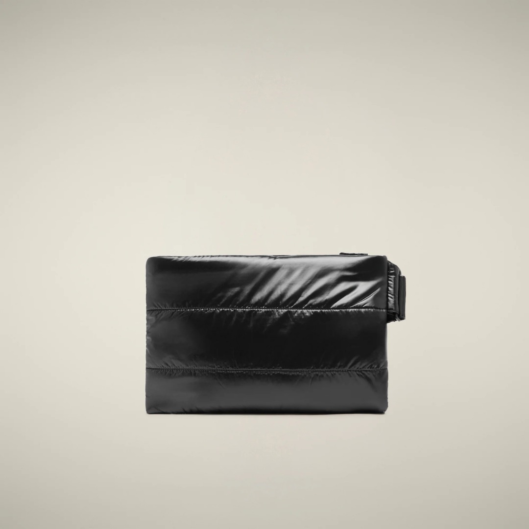 Tieni al sicuro i tuoi oggetti essenziali in viaggio con la nostra pochette modello Cocos. Realizzata in tessuto trapuntato con finitura lucida, questa pochette da polso è dotata di un pratico cinturino con la scritta ANIMAL FREE stampata. La sua forma rettangolare e l'apertura superiore con cerniera garantiscono un facile accesso, mentre le tasche interne garantiscono uno spazio ordinato.