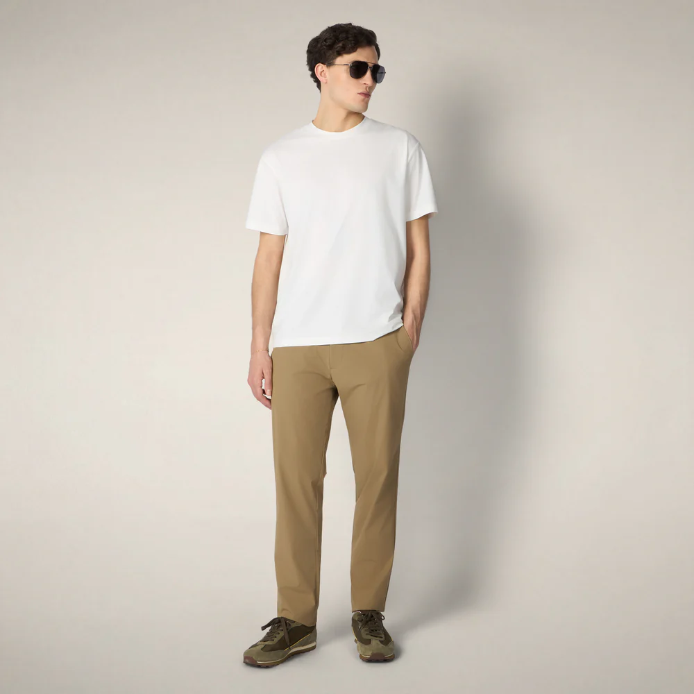 Essenziale e versatile, la T-shirt uomo modello Gabe conquista un posto sul podio dei tuoi basic preferiti grazie alla vestibilità fresca e ultraleggera. La linea classica — girocollo a maniche corte — è realizzata in un nuovo jersey che punta tutto sulla praticità : zero pieghe da stirare, resistenza pilling, vestibilità stabile lavaggio dopo lavaggio. Completa il look il badge rotondo sulla manica.