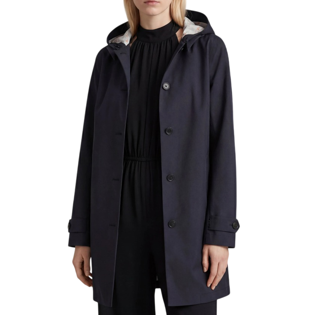 Sfida la pioggia con l'impermeabile donna modello Embie, realizzato in tessuto waterproof con imbottitura animal free in Recycled Plumtech®. Le cuciture nastrate e i bottoni sui polsi offrono protezione extra, mentre il cappuccio rimovibile e la chiusura con zip e bottoni effetto corno uniscono praticità ed eleganza. Due comode tasche in stile trench e il logo in rilievo sulla manica completano il design.