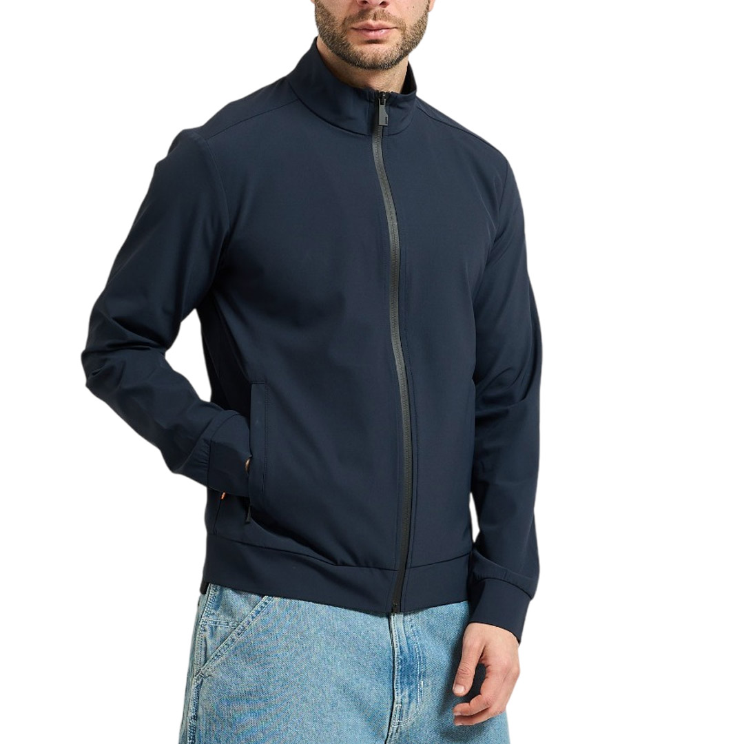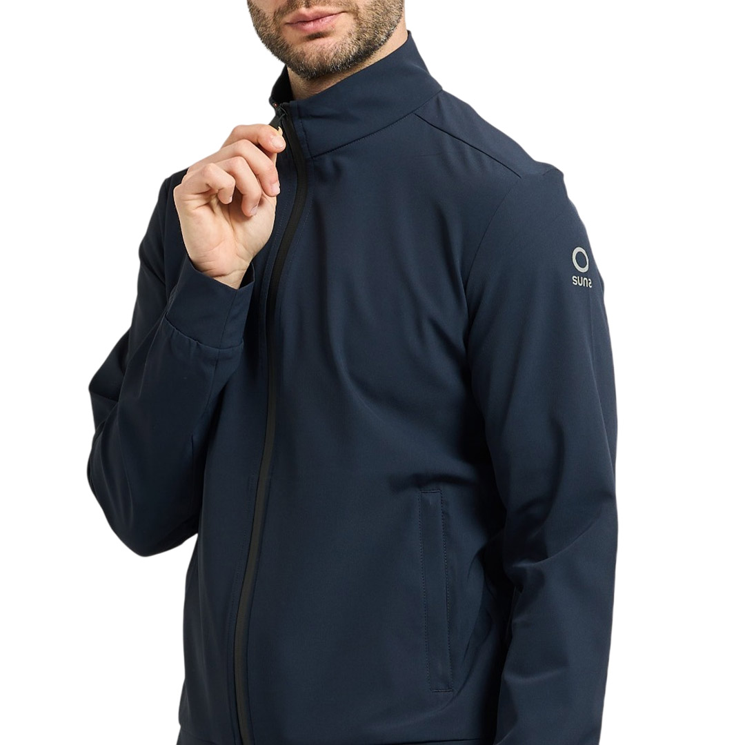 Felpa da uomo Suns in tessuto tecnico. Collo alto, Chiusura fullzip con zip waterproof. Tasche laterali con cerniera invisibile. Polsi e fondo in tessuto tono su tono