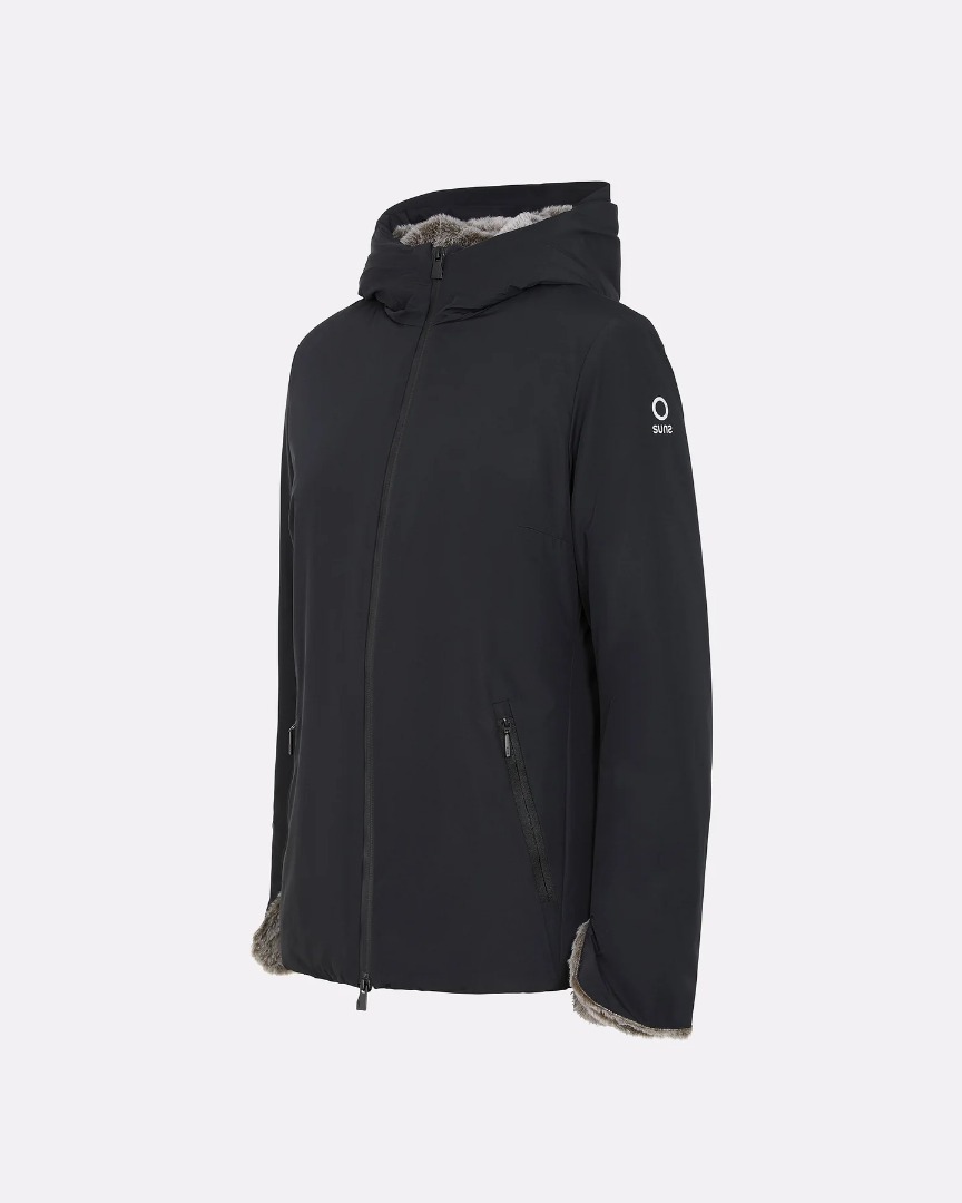 Un giubbotto femminile dal design minimal, pensato per affrontare l’inverno con uno stile sofisticato. Il modello presenta un cappuccio fisso, una chiusura frontale termosaldata e un'estetica pulita e funzionale. Il fondo manica è rifinito in eco pelliccia a contrasto, un dettaglio distintivo che valorizza l’intero capo. L’interno in eco pelliccia calda garantisce un elevato livello di protezione dal freddo, rendendolo ideale per la stagione più rigida. Le tasche laterali con zip aggiungono praticità al look essenziale. Design essenziale con cappuccio fisso: protezione e linearità estetica. Chiusura frontale termosaldata: look pulito e funzione anti-vento. Fondo manica rifinito in eco pelliccia: dettaglio elegante e distintivo. Interno in eco pelliccia calda: massimo calore e comfort termico. Tasche laterali con zip: funzionalità quotidiana.