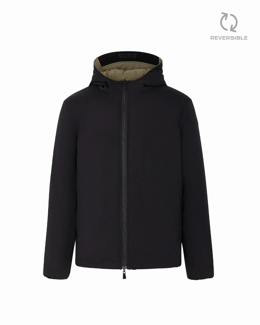 Giubbotto reversibile da uomo pensato per offrire comfort, protezione e stile durante l’inverno. Il tessuto in nylon tecnico garantisce resistenza e leggerezza, mentre il design double-face consente di variare il look a seconda delle esigenze. Il cappuccio fisso protegge efficacemente dal vento ed è impreziosito da un inserto in gomma con logo Suns applicato sul retro. Dotato di zip waterproof con doppio cursore e tasche laterali con chiusura a zip su entrambi i lati, questo modello unisce funzionalità e design contemporaneo. L’imbottitura leggera è ideale per affrontare le basse temperature mantenendo una vestibilità comoda. Modello reversibile: doppio look con zip a doppio cursore. Cappuccio fisso: copertura ottimale contro freddo e vento. Zip waterproof: chiusura frontale impermeabile. Tasche laterali con zip: presenti su entrambi i lati per massima praticità. Polsini interni elasticizzati: maggiore comfort termico. Inserto in gomma con logo Suns: dettaglio visivo distintivo sul cappuccio. Imbottitura leggera: calore senza ingombro, perfetto per l’inverno.