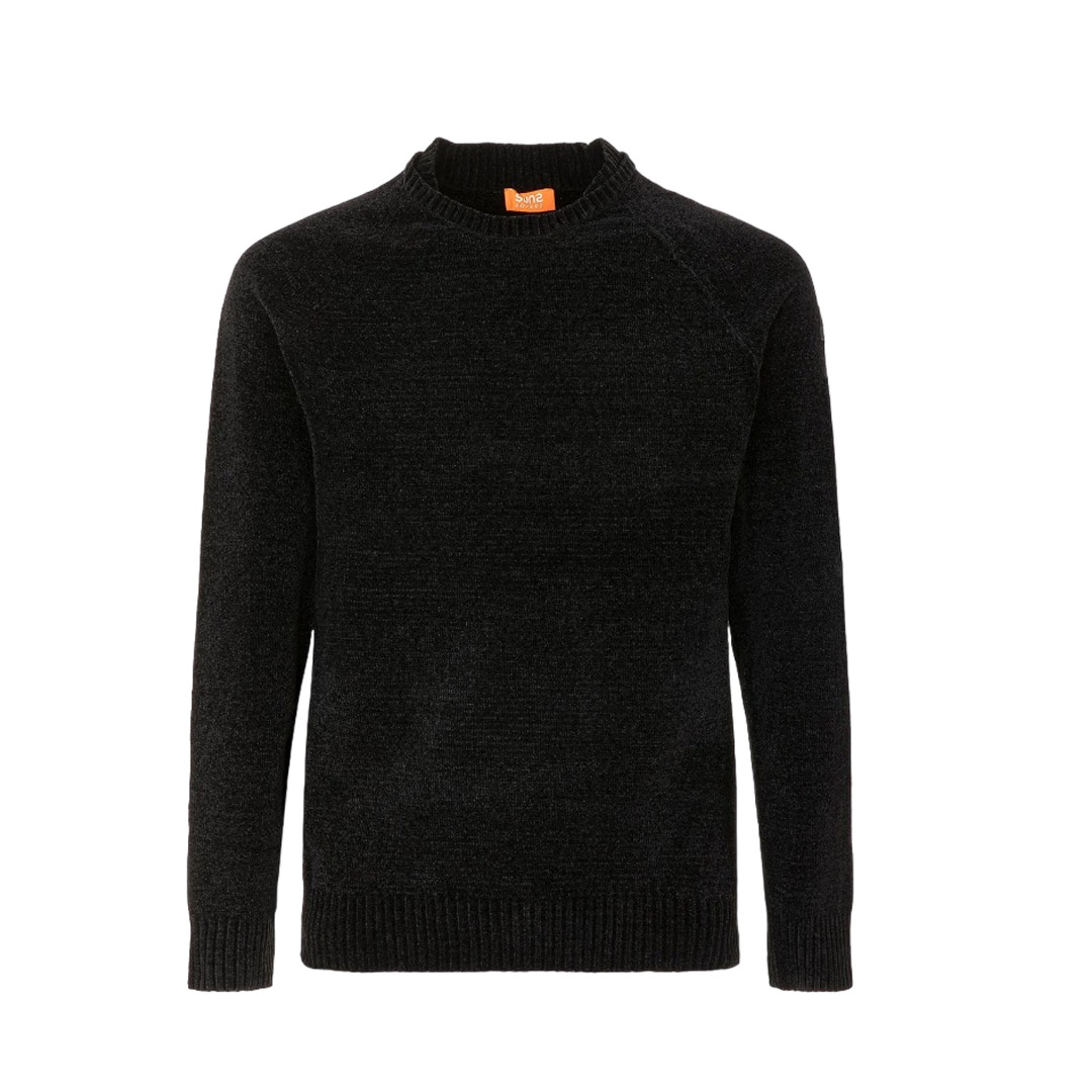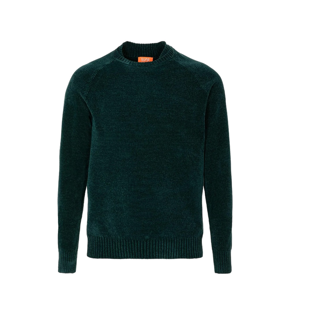 Maglia Knit girocollo realizzata in ciniglia con tag SUNS fluo sul retro. Capo che fa della pulizia e della semplicità delle linee la caratteristica chiave. Dettaglio unico della lavorazione a doppio collo. Presenta polsi e fine capo in costine per garantire una vestibilità e fitting unici e personali.