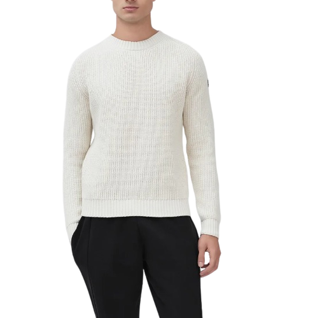 Maglia Knit girocollo in cotone e acrilico riciclato con patch SUNS sul braccio sinistro e tag fluo sul retro. Capo che fa della pulizia e della semplicità delle linee la caratteristica chiave. Realizzato in costa inglese, regala un calore e una morbidezza per renderlo il compagno ideale in tutte le occasioni.