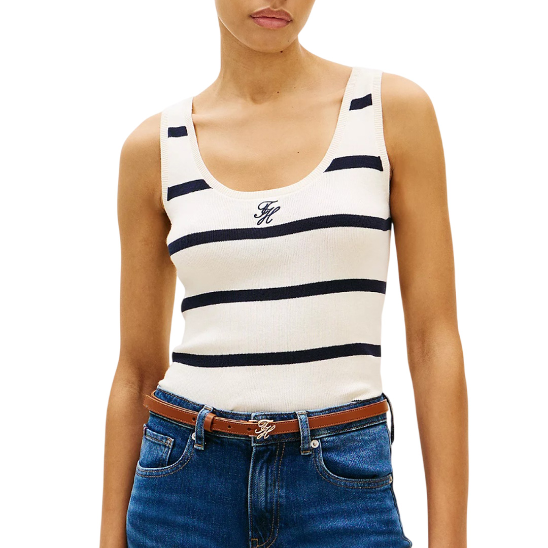 Una categoria inedita di capi in maglia ricchi di struttura, sostanza e stile. La canotta slim fit è realizzata in maglia di puro cotone pettinato a trama fitta, per una finitura lussuosa. Caratteristiche principali • Puro cotone pettinato • Girocollo • Collo e giromanica a coste • Nastro iconico all'interno del collo • Logo Tommy Hilfiger in corsivo ricamato sul davanti • Branding Tommy Hilfiger • Bandierina Tommy Hilfiger ricamata sul fondo Modello e vestibilità • Slim fit