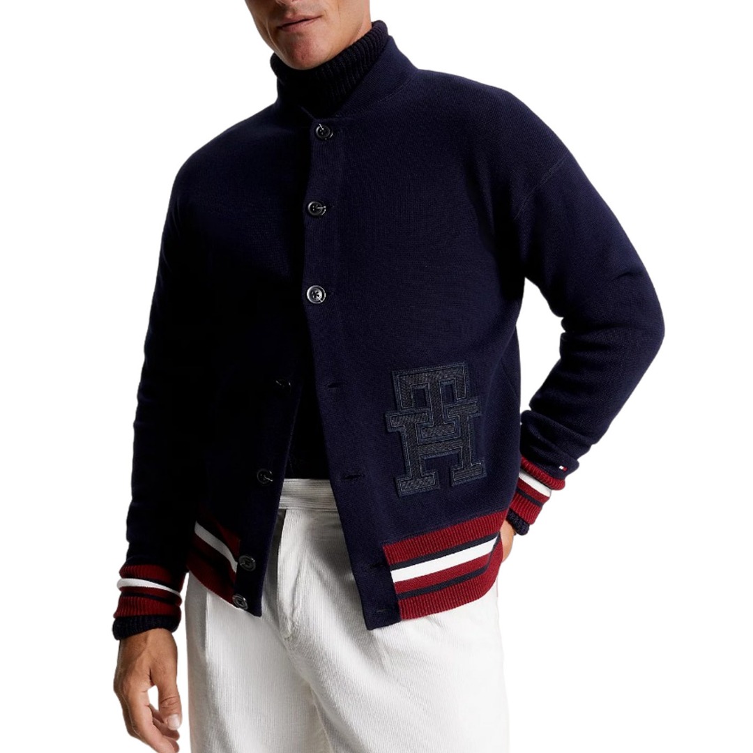 Tommy Hilfiger Cardigan Varsity Oversize Stile Bomber Blu Mw0Mw33090 96552