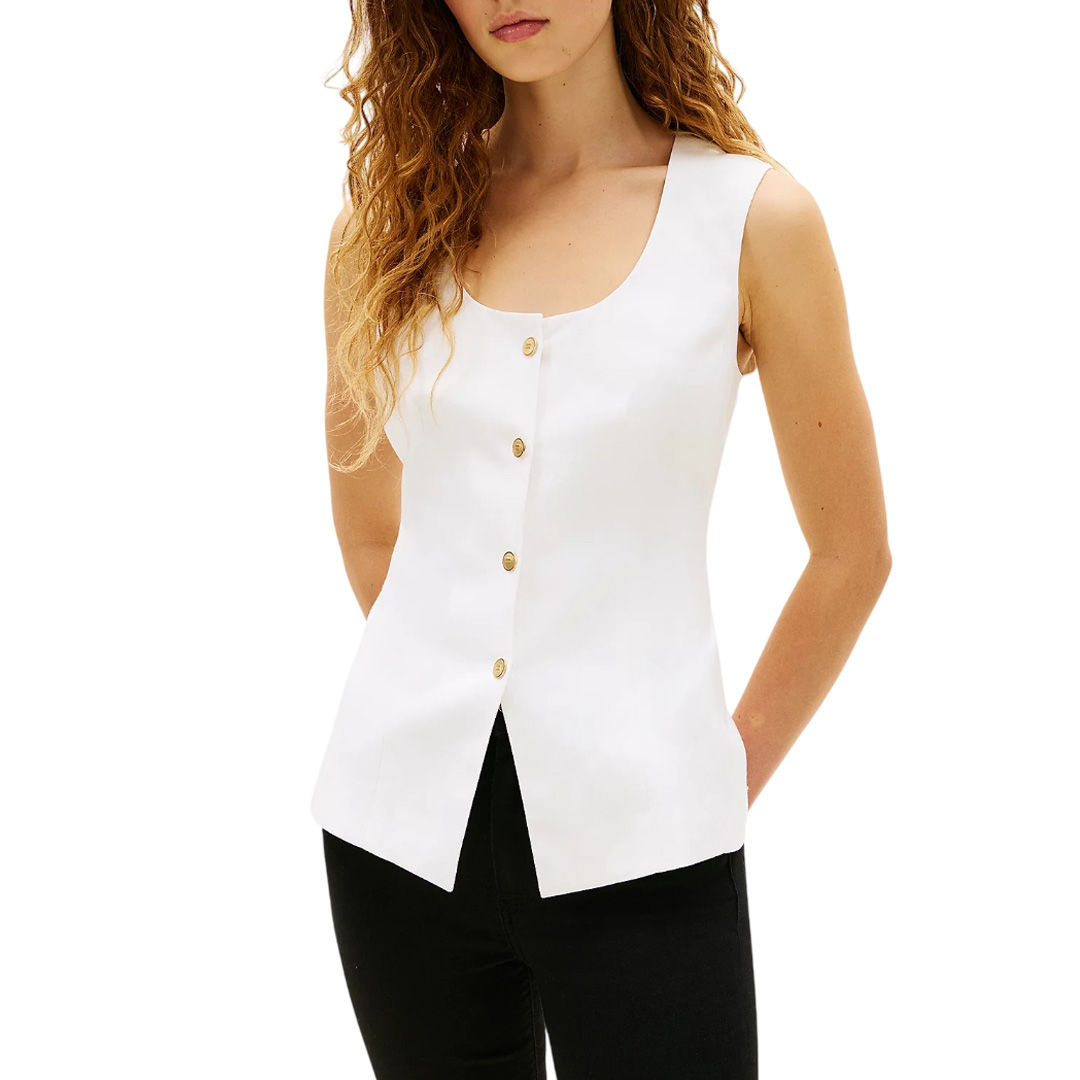 Tommy Hilfiger Gilet In Misto Lino Bianco Ww0Ww49765 176953
