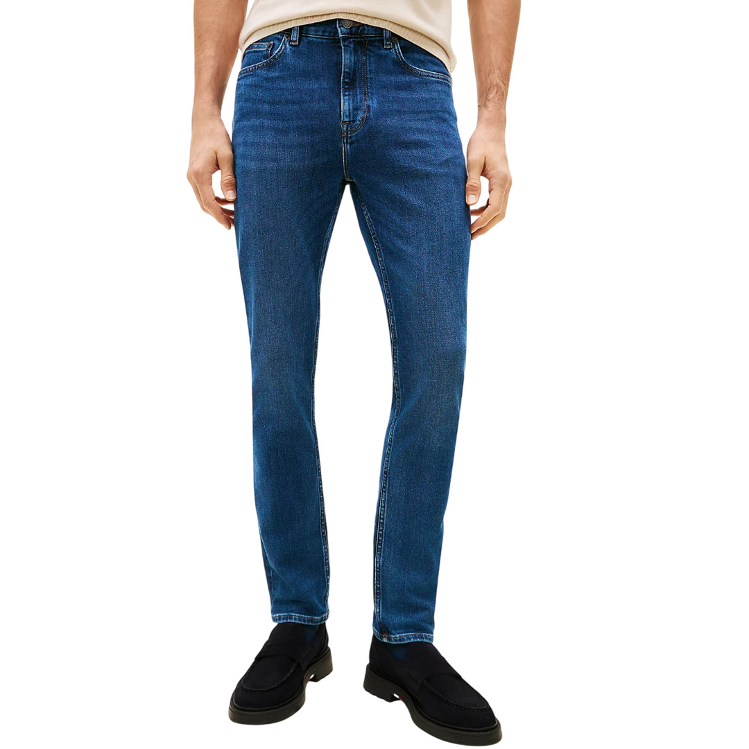 I jeans dal taglio slim assicurano una figura slanciata, mentre il nastro iconico aggiunge un inconfondibile tocco di stile. Caratteristiche principali • Denim di misto cotone stretch • Scoloriture sulle cuciture • Chiusura con zip e bottone • Modello cinque tasche • Nastro iconico sul taschino portamonete • Branding Tommy Hilfiger • Bandierina Tommy Hilfiger ricamata sulla tasca posteriore Modello e vestibilità • Slim fit