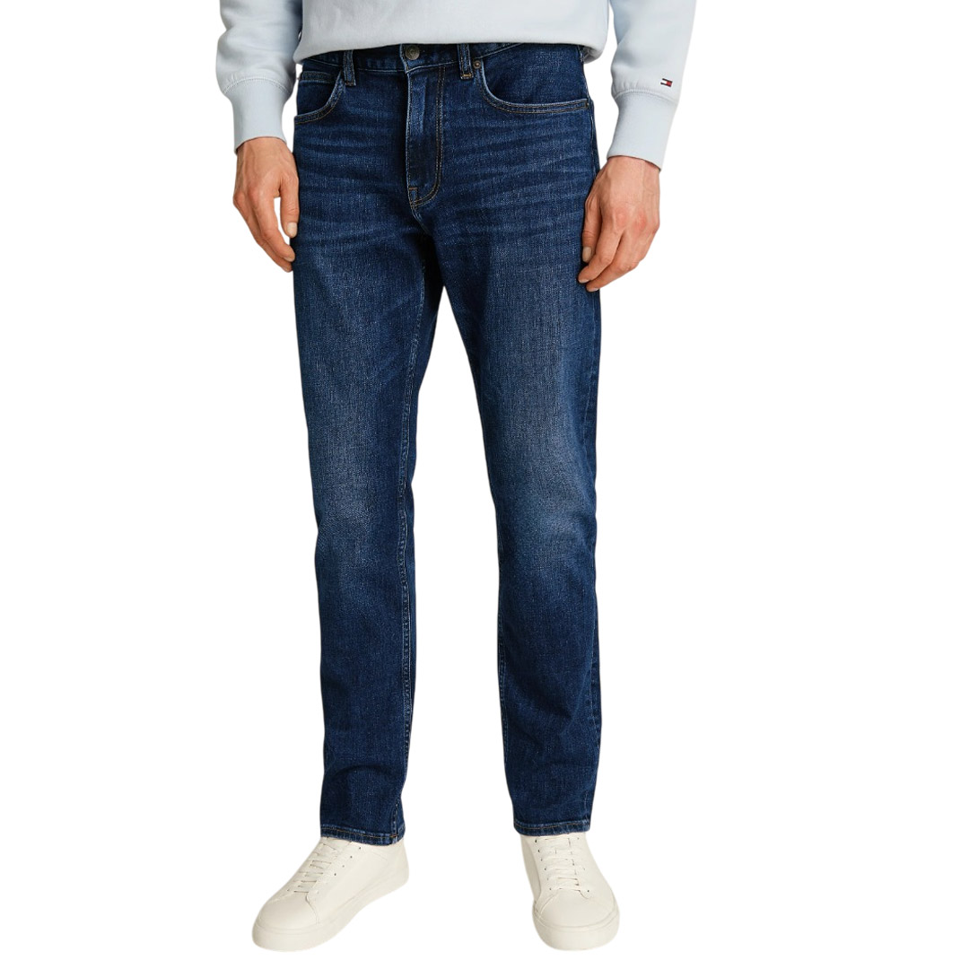 Caratteristiche principali • Denim di cotone stretch • Lavaggio scuro • Scoloriture su cosce e ginocchia • Baffature sul davanti e sul retro • Branding Tommy Hilfiger • Bandierina Tommy Hilfiger ricamata sulla tasca posteriore Modello e vestibilità • Taglio dritto