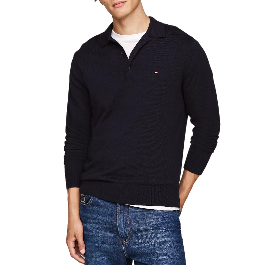 Tommy Hilfiger Maglia Con Colletto A Polo E Cashmere Blu Mw0Mw36519 132182