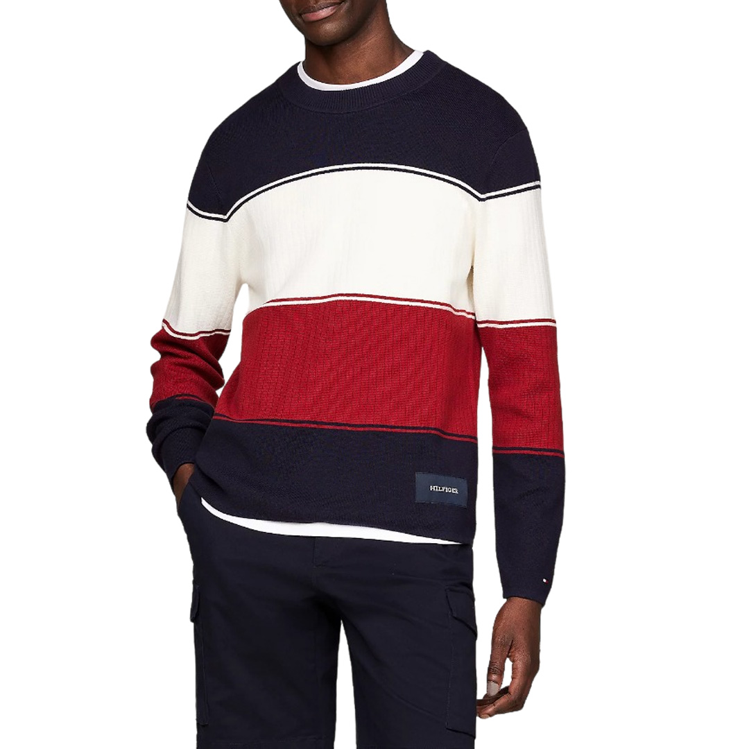 L'intramontabile pullover in maglia liscia e a coste è caratterizzato dall'intramontabile motivo color block, ideale per aggiungere un tocco iconico ai tuoi look a strati. • Puro cotone biologico • Motivo color block • Mix di lavorazioni a maglia • Girocollo • Collo a coste • Patch logo Hilfiger monotipo sul fondo • Branding Tommy Hilfiger • Bandierina Tommy Hilfiger ricamata sul polsino • Relaxed fit • Spalle leggermente scese