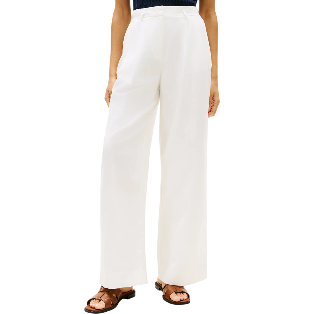 Tommy Hilfiger Pantalone In Misto Lino Bianco Ww0Ww48884 176956