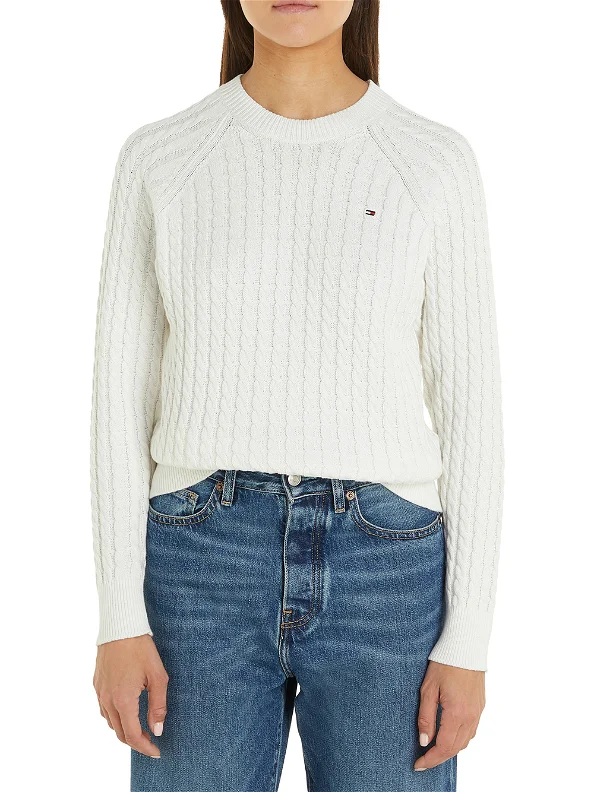 La lavorazione a maglia intrecciata e lo stile intramontabile rendono il pullover in puro cotone biologico un must have irrinunciabile per il tuo guardaroba. • Puro cotone biologico • Maglia intrecciata all over • Girocollo • Collo, polsini e fondo a coste • Nastro iconico all'interno del collo • Branding Tommy Hilfiger • Bandierina Tommy Hilfiger ricamata sul petto • Relaxed fit • Maniche raglan