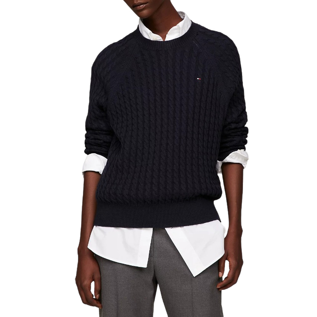 Tommy Hilfiger Pullover Relaxed Fit In Maglia Intrecciata Blu Ww0Ww41142 108926