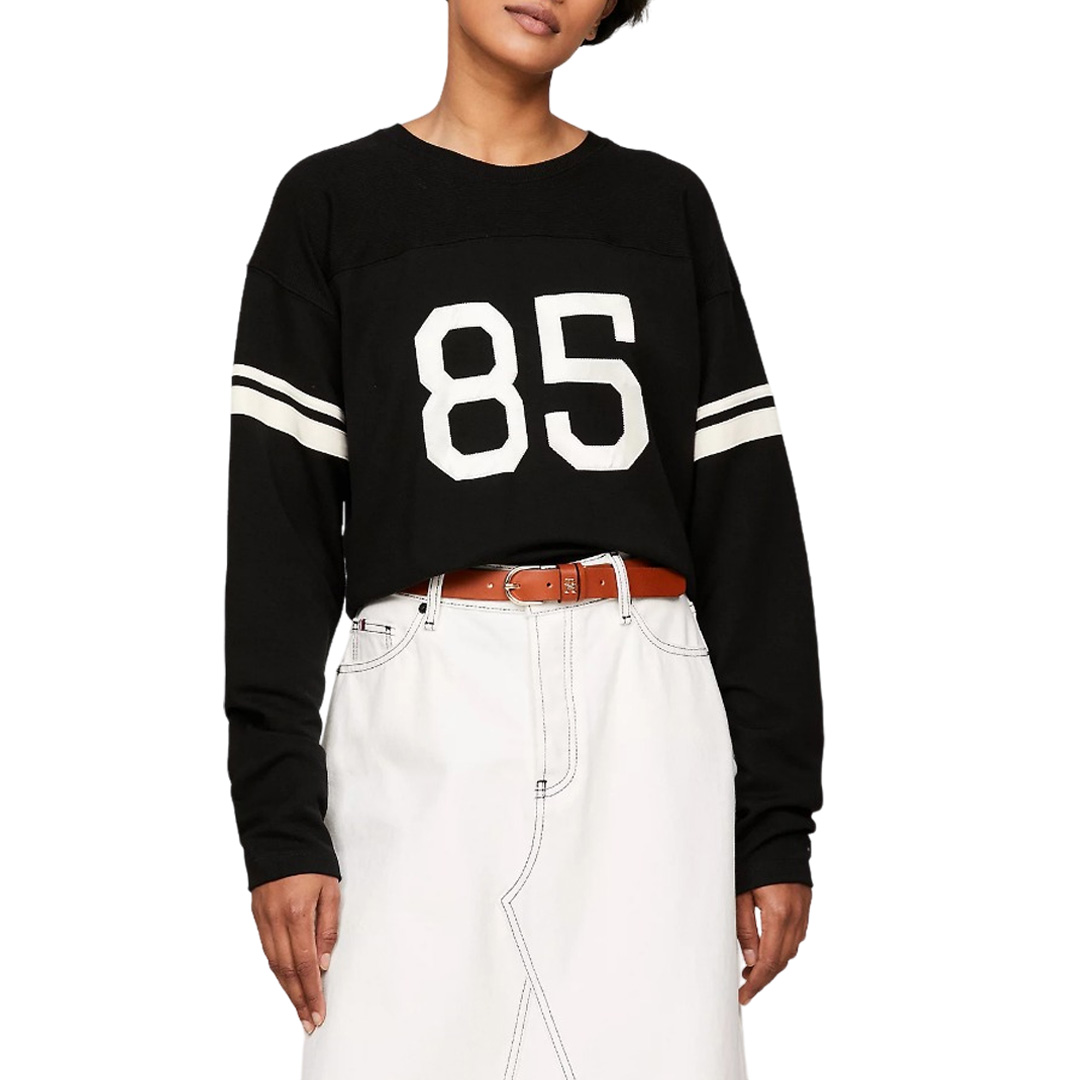Esprimi l'unicità del tuo stile con la T-shirt a maniche lunghe, decorata dal mix di righe e dall'iconico logo in stile college. • Misto Tencel™ stretch • Prodotto in collaborazione con Better Cotton Initiative • 1985 Collection • Logo 85 Tommy Hilfiger sul davanti • Logo Hilfiger monotipo sul retro • Girocollo • Branding Tommy Hilfiger • Regular fit • Spalle scese • Maniche lunghe