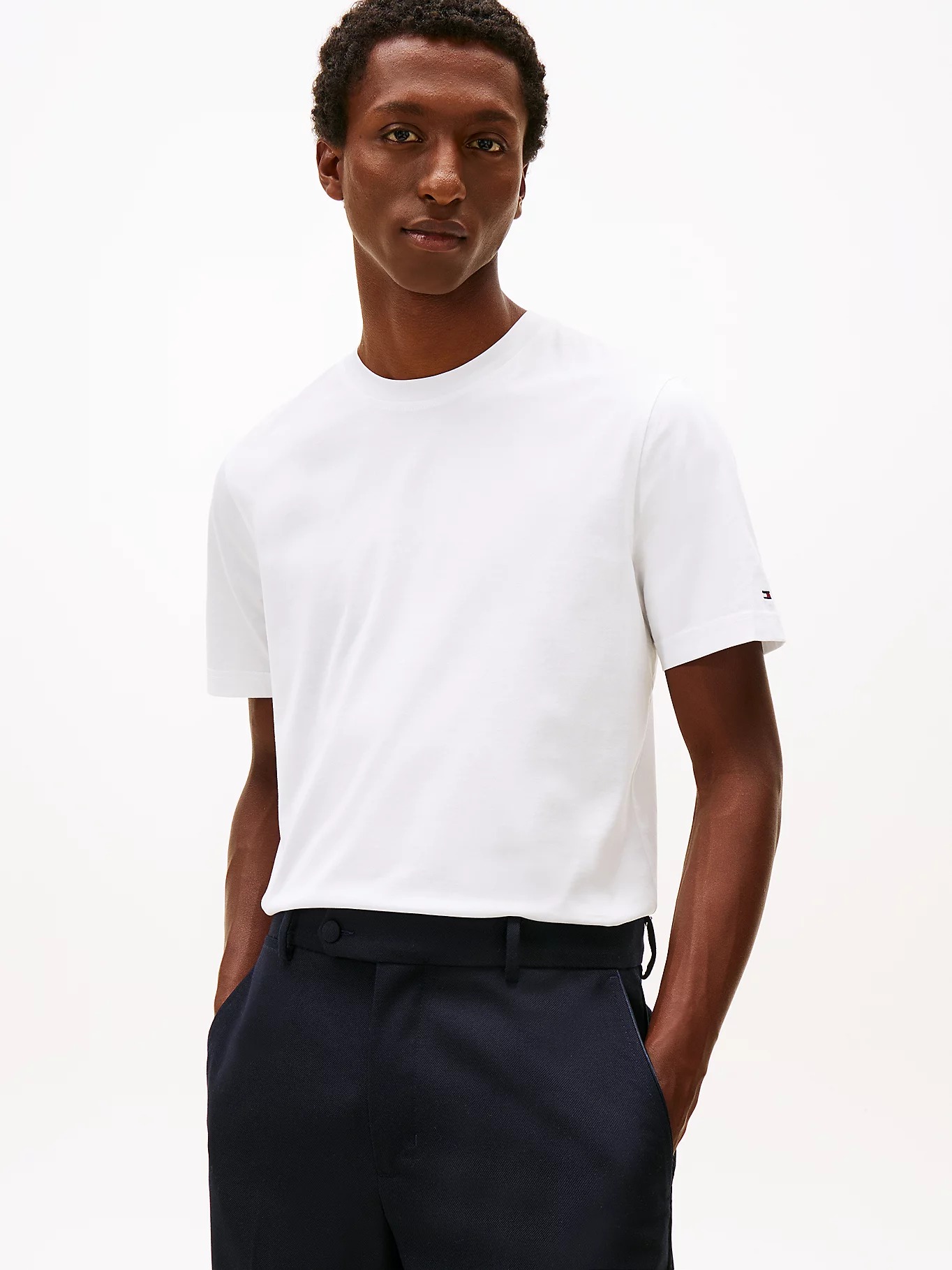 La collezione Smart Casual abbina materiali morbidi in tonalità neutre a linee e finiture essenziali, dando vita a capi raffinati ed eleganti, adatti sia per le giornate in ufficio sia per un aperitivo informale con gli amici. Il tessuto in jersey di puro cotone mercerizzato, utilizzato per realizzare la T-shirt regular fit, garantisce resistenza e un'estetica accattivante. Caratteristiche principali • Jersey di puro cotone mercerizzato • Girocollo • Dettaglio iconico all'interno del collo • Branding Tommy Hilfiger • Bandierina Tommy Hilfiger ricamata sulla manica Modello e vestibilità • Regular fit
