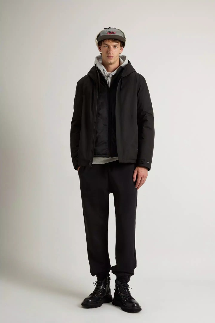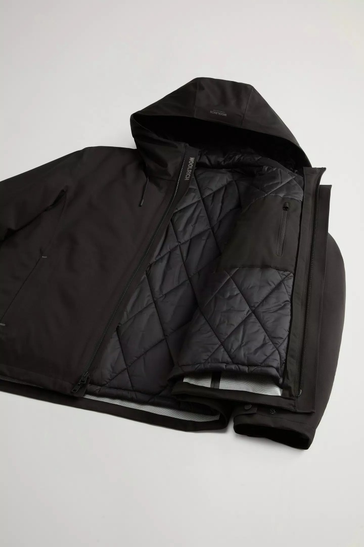 Progettata per garantire massima versatilità e protezione, questa giacca 3 in 1 è realizzata in twill di poliestere a 2,5 strati, idrorepellente, resistente al vento e traspirante. Lo strato esterno è parzialmente nastrato per una protezione extra e presenta cappuccio regolabile, zip bidirezionale impermeabile parzialmente coperta da patta, due tasche con zip, polsini regolabili e dettagli riflettenti sui lati per una maggiore visibilità al buio. Il design include una giacca interna rimovibile, imbottita e dotata di cappuccio, double face con un lato trapuntato e uno liscio a tinta unita. Ha tasche a filetto e tasca interna con zip sul lato trapuntato. È collegata allo strato esterno tramite una zip centrale, un bottone a pressione sul cappuccio e passanti su polsini e collo. I due strati possono essere indossati insieme o separatamente, in base alle condizioni climatiche o allo stile desiderato. Realizzata in twill di poliestere a 2,5 strati Tessuto idrorepellente, resistente al vento e traspirante Cuciture parzialmente nastrate Design 3 in 1 Cappuccio regolabile Chiusura frontale con zip impermeabile e bidirezionale parzialmente coperta dalla patta Tasche con zip Dettagli riflettenti sui lati per maggiore visibilità al buio Polsini regolabili con bottone a pressione Logo riflettente sulla visiera del cappuccio e sulla parte inferiore della patta frontale Etichetta laterale Giacca interna rimovibile Imbottitura da 100g Double face con lato trapuntato e lato a tinta unita Cappuccio Tasche a filetto sul lato trapuntato Tasca interna con zip sul lato trapuntato Scala di termicità: Freddo medio -10 °C / 0 °C