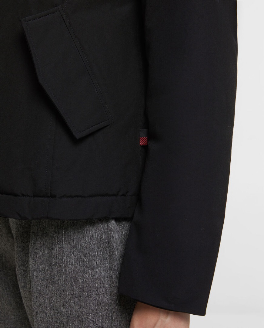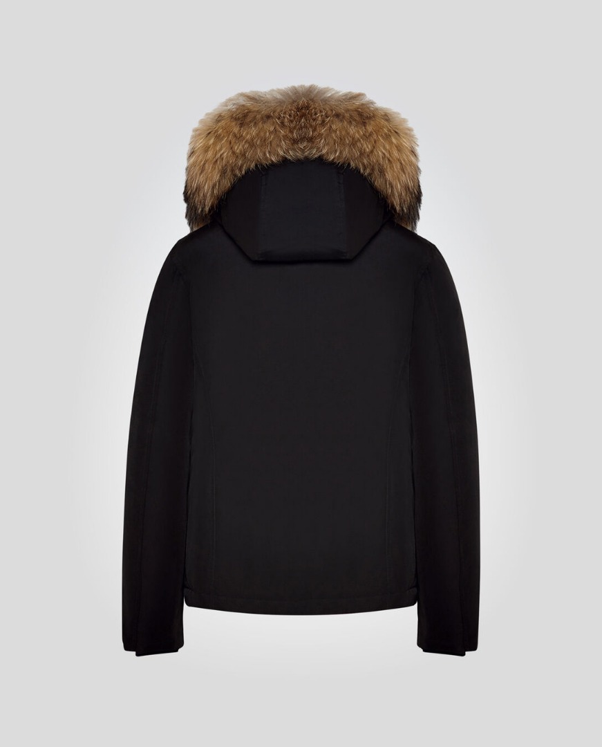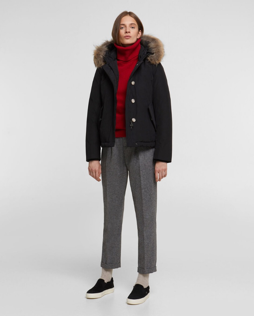 La giacca è una versione corta dell'iconico Arctic Parka ed è realizzata in tessuto Ramar idrorepellente con speciale finitura in Teflon molto resistente a pioggia, neve e vento. Ha la vestibilità slim, il collo rifinito in pelliccia rimovibile, la chiusura con zip coperta da patta con bottoni, le tasche inserite con patta, il logo ricamato al collo e l'etichetta flag al fianco. L'imbottitura è in piuma 80/20. Perfetto da sfoggiare in città, in tutte le occasioni quotidiane.