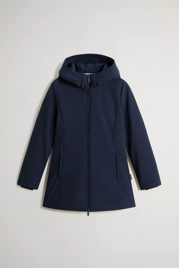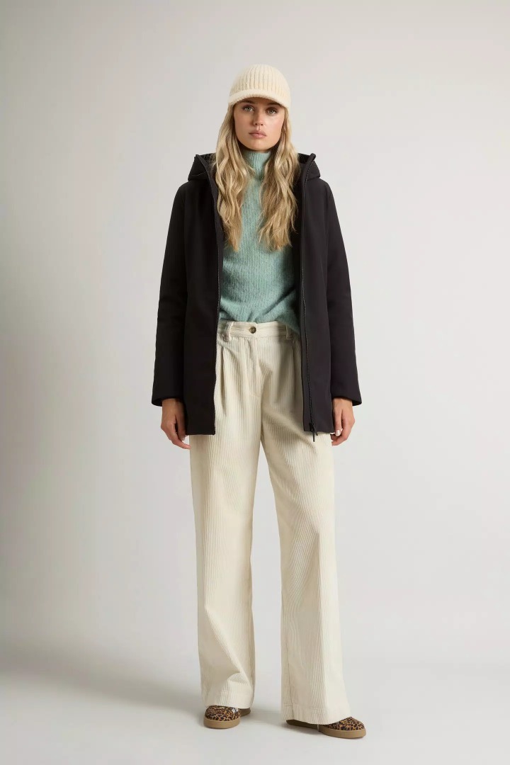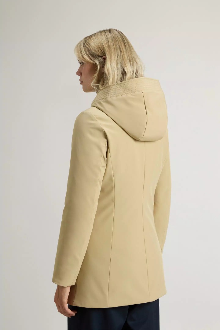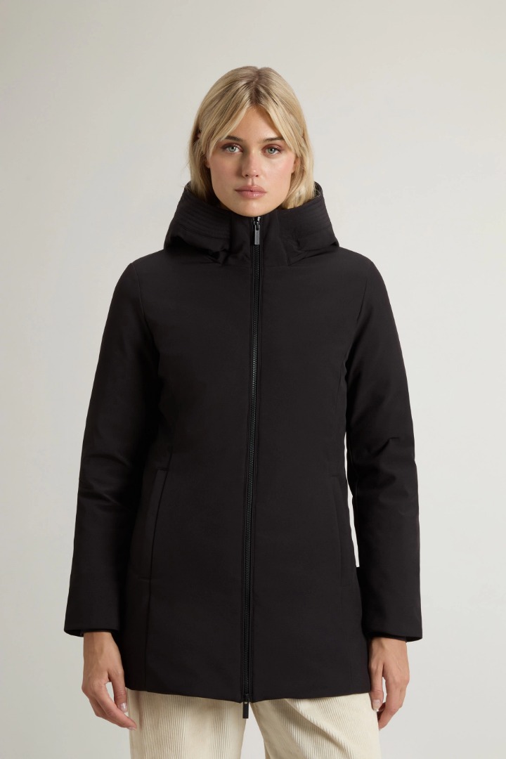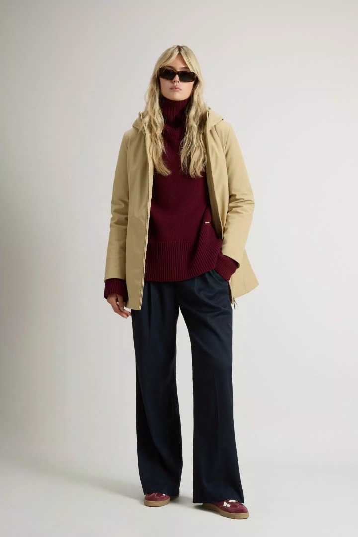 Un design iconico dalle linee contemporanee: il Firth Parka unisce l’eleganza della tradizione Woolrich a un tocco di femminilità, grazie alla silhouette slanciata valorizzata dalla coulisse interna regolabile in vita. Realizzato in Tech Softshell, un tessuto resistente all’acqua e antivento, è imbottito in piuma d'anatra con una trapuntatura Chevron all'interno. È dotato di cappuccio e collo alto per una protezione ottimale, presenta tasche a filetto, una comoda tasca interna con zip, polsini a costine e un’etichetta applicata lateralmente. Realizzato in tessuto Tech Softshell Tessuto resistente all'acqua e antivento Imbottito in piuma d'anatra 70/30 RDS certificato da Control Union CU 884067 Trapuntatura interna Chevron Cappuccio Collo alto Chiusura con zip bidirezionale Coulisse interna in vita Tasche laterali a filetto con zip Tasca interna con zip Polsini a costine Etichetta laterale Vestibilità slim