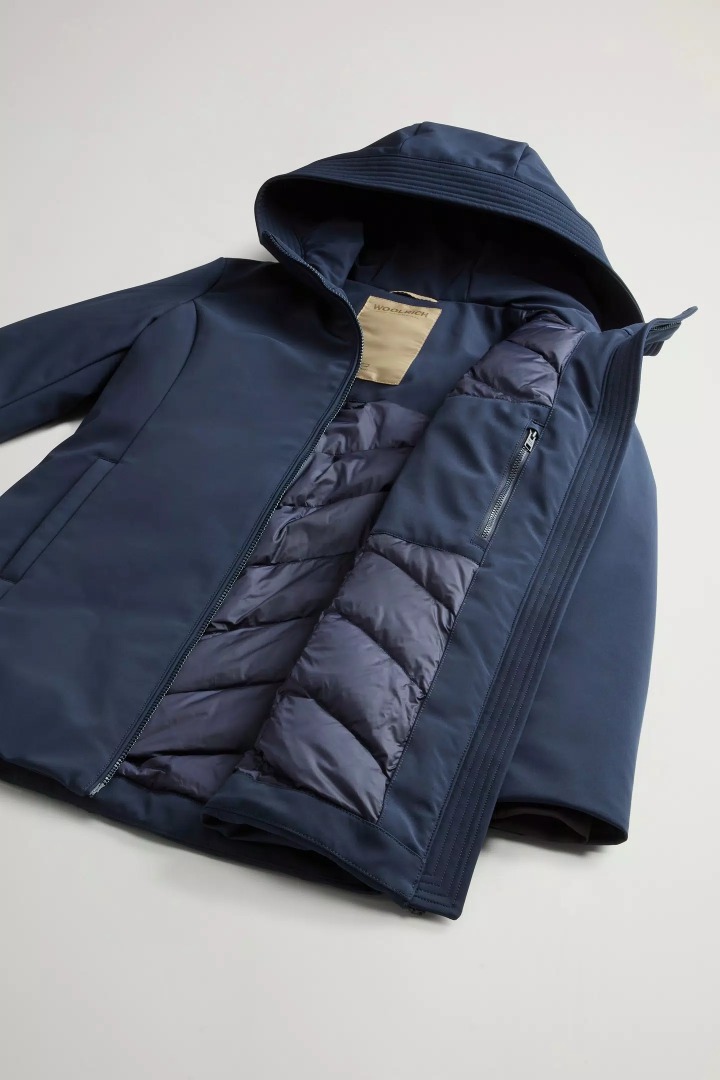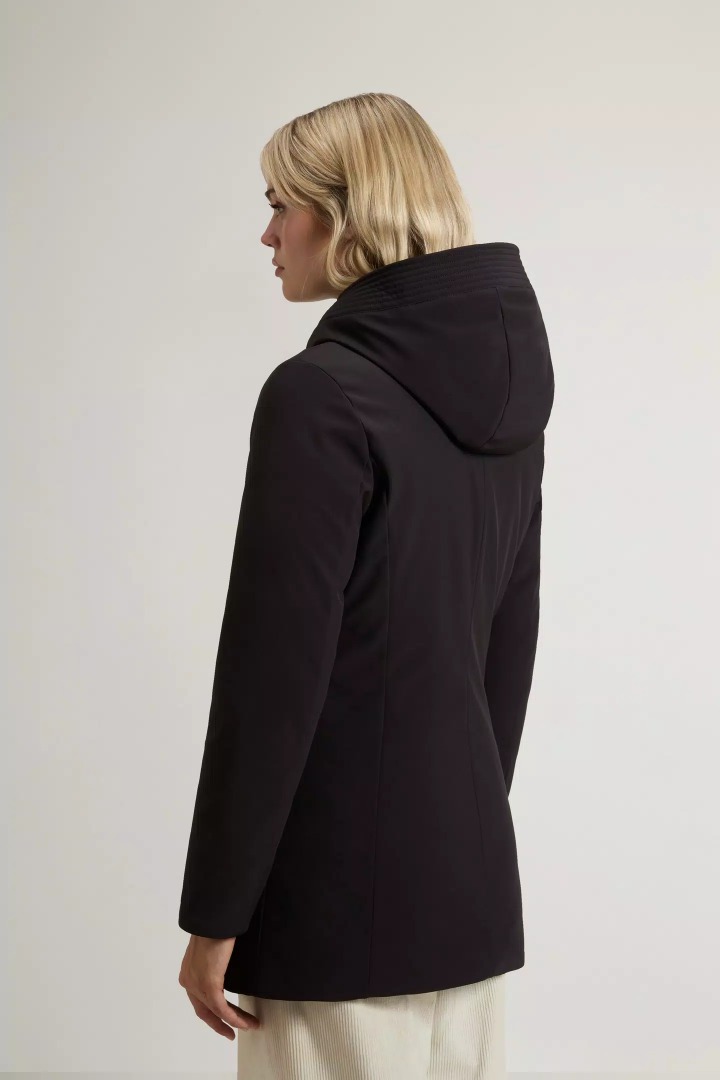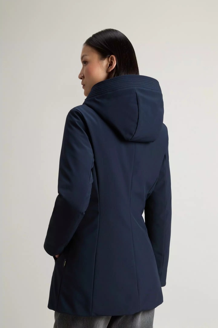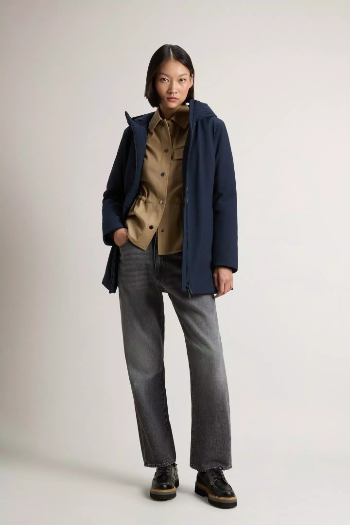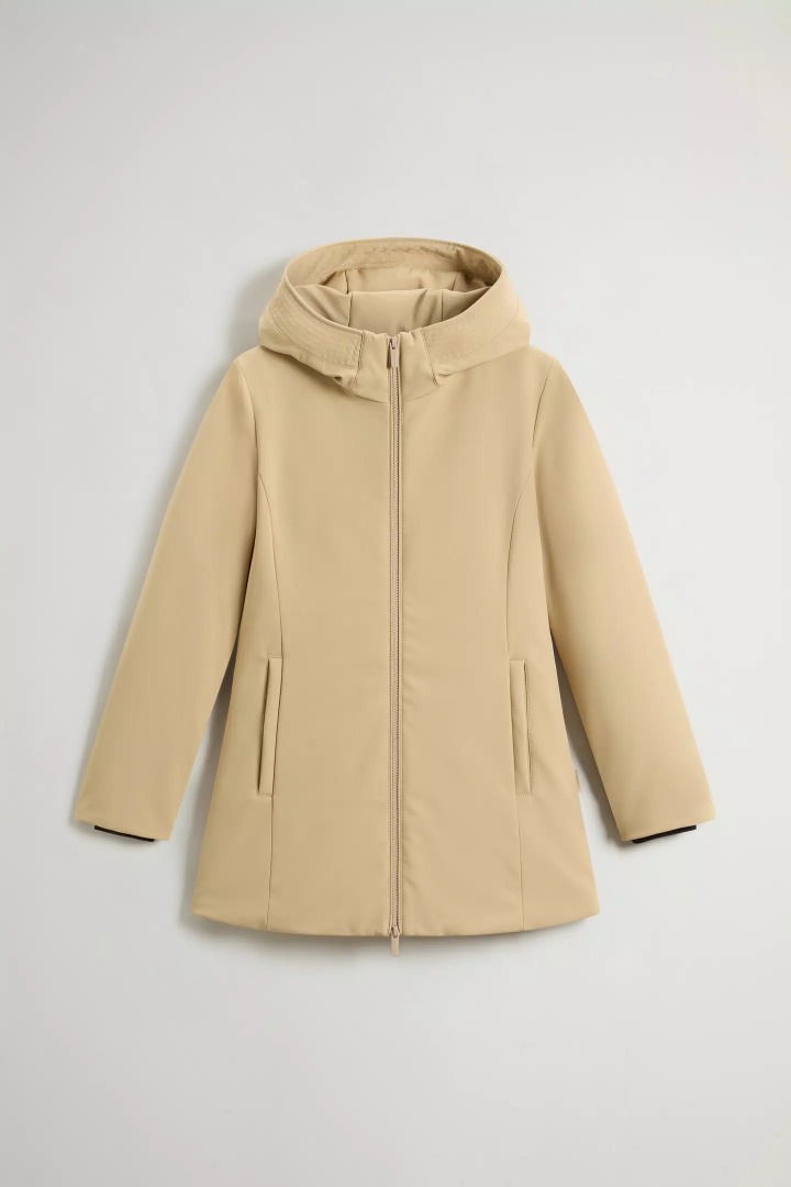 Un design iconico dalle linee contemporanee: il Firth Parka unisce l’eleganza della tradizione Woolrich a un tocco di femminilità, grazie alla silhouette slanciata valorizzata dalla coulisse interna regolabile in vita. Realizzato in Tech Softshell, un tessuto resistente all’acqua e antivento, è imbottito in piuma d'anatra con una trapuntatura Chevron all'interno. È dotato di cappuccio e collo alto per una protezione ottimale, presenta tasche a filetto, una comoda tasca interna con zip, polsini a costine e un’etichetta applicata lateralmente. Realizzato in tessuto Tech Softshell Tessuto resistente all'acqua e antivento Imbottito in piuma d'anatra 70/30 RDS certificato da Control Union CU 884067 Trapuntatura interna Chevron Cappuccio Collo alto Chiusura con zip bidirezionale Coulisse interna in vita Tasche laterali a filetto con zip Tasca interna con zip Polsini a costine Etichetta laterale Vestibilità slim