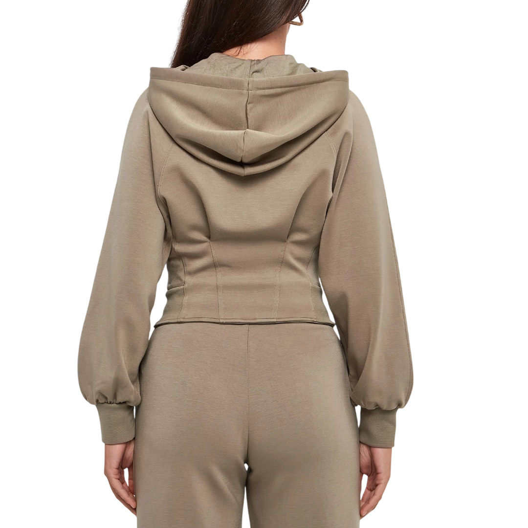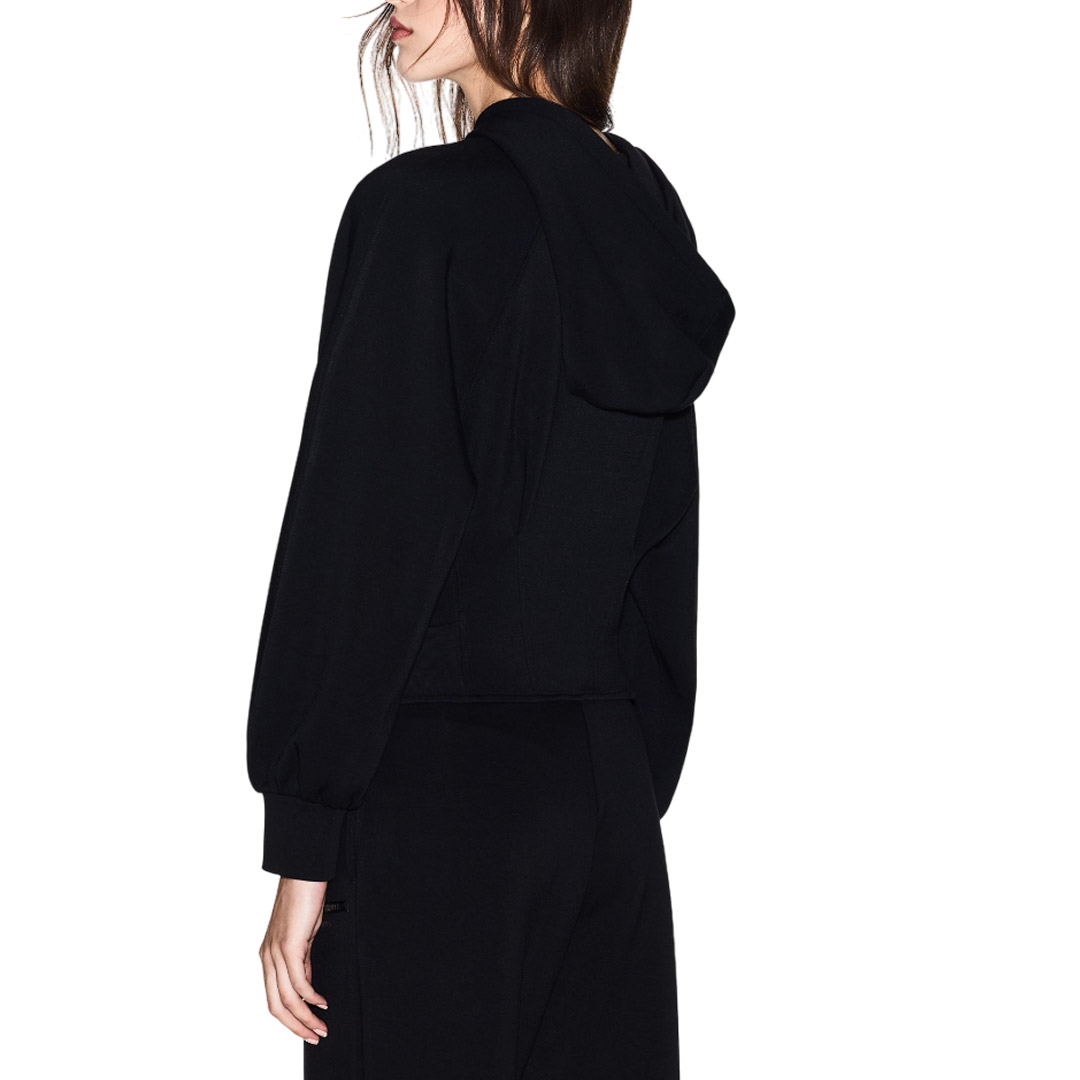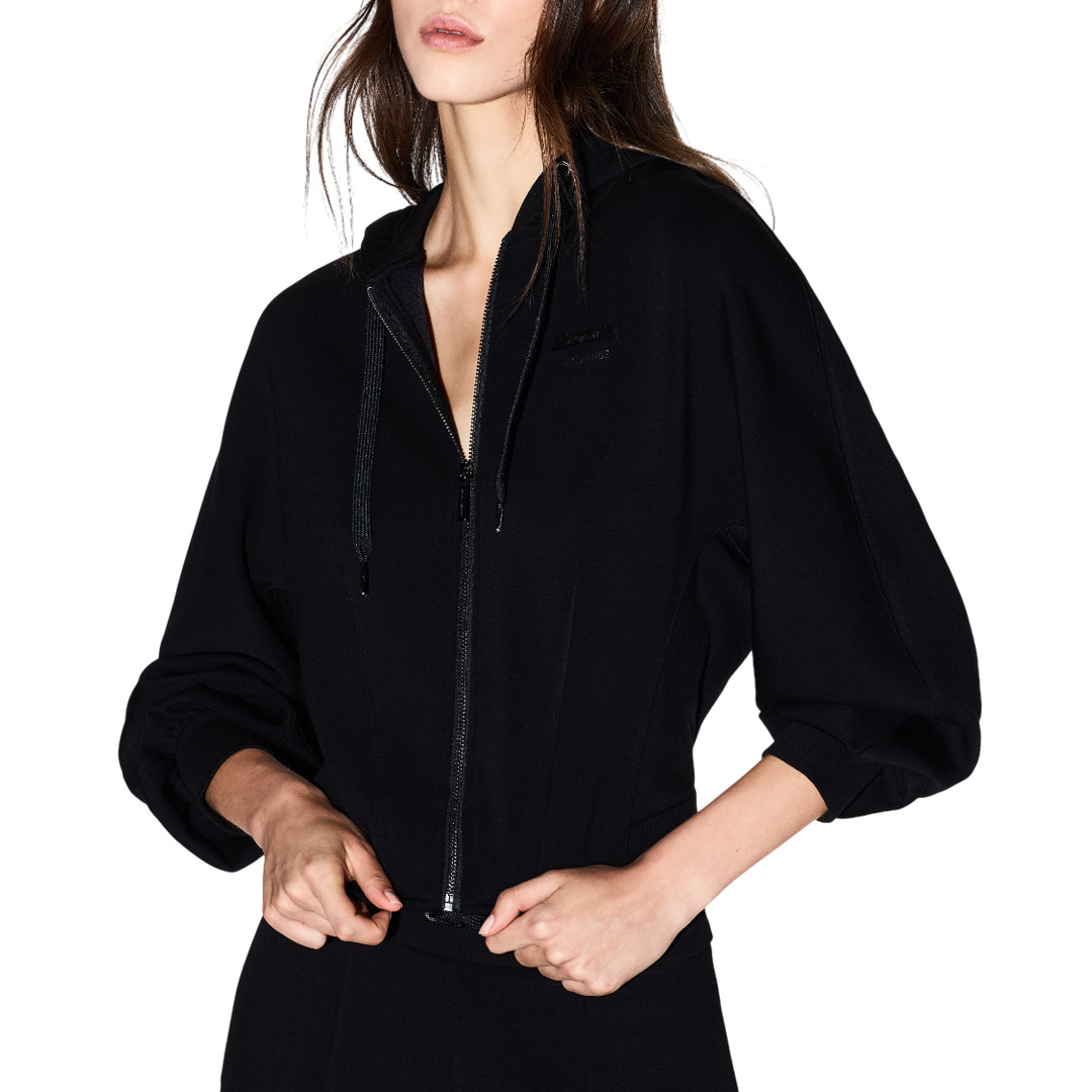 Tessuto: 56% poliammide, 36% viscosa, 8% elastan; dettagli in maglia: 95% cotone, 5% elastan; fodera cappuccio: 100% viscosa