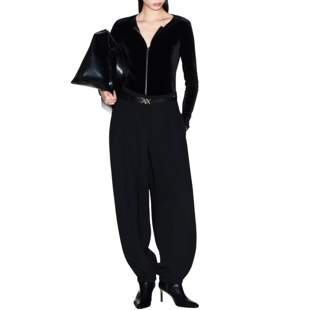 Questi pantaloni casual ARMANI EXCHANGE sono realizzati in tessuto drappeggiato per garantire comfort e facilità di manutenzione. I polsini affusolati creano una silhouette elegante e valorizzante. Abbinati a un top corto, esaltano le tue proporzioni. Il logo in metallo in vita crea un look semplice ma elegante, perfetto per tutti i giorni o per una serata fuori.