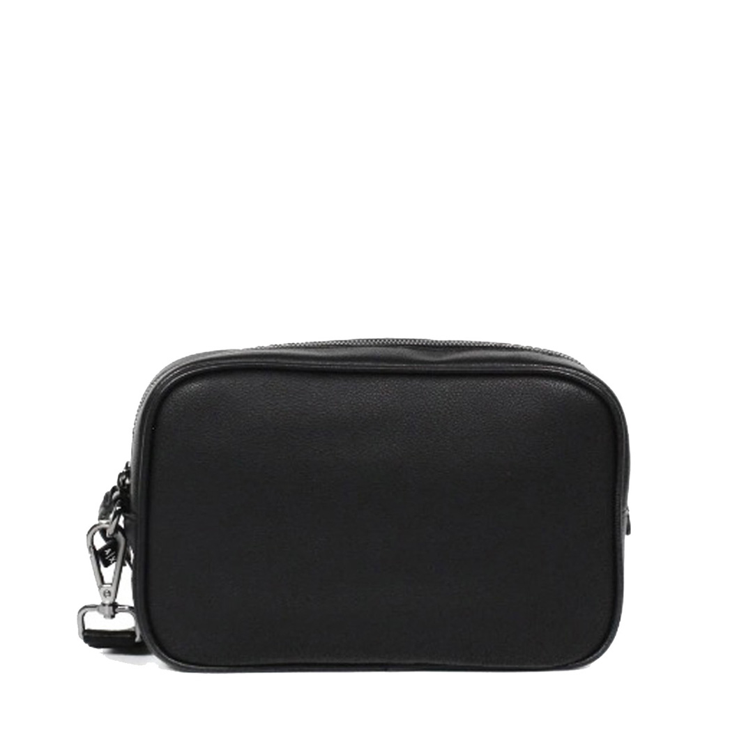 Pochette da uomo in ecopelle con logo frontale, polsino laterale, tasca anteriore e scomparto centrale chiusi con zip, interni foderati con la presenza di 1 tasca multiuso. Misure Lunghezza 24 cm Altezza 16 cm Profondità 7 cm