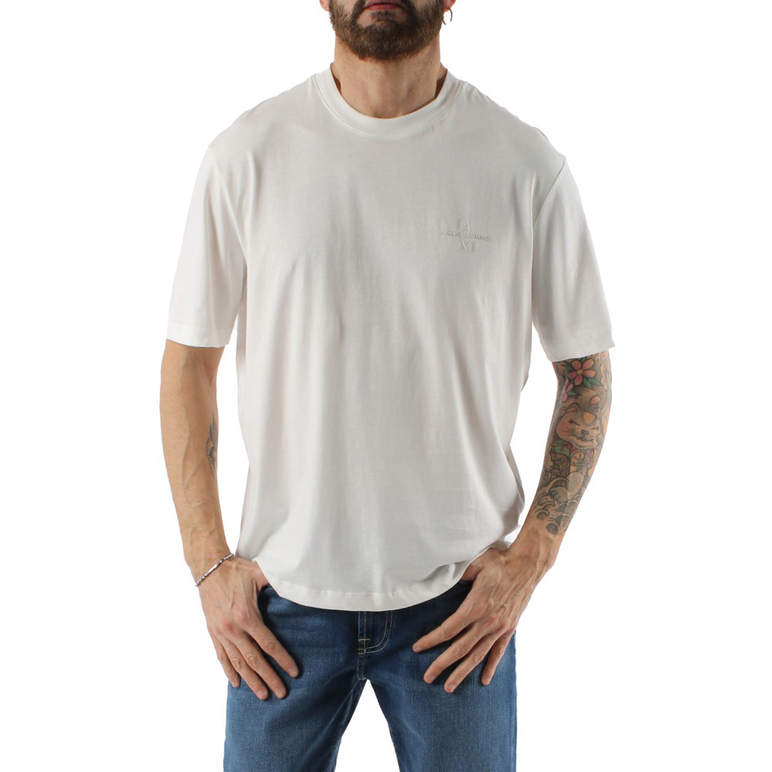 Scopri la T-shirt Armani Exchange in leggerissimo cotone stampato, un capo perfetto per un look fresco e contemporaneo. Realizzata in cotone di alta qualità, assicura massima traspirabilità e comfort durante tutta la giornata. La vestibilità regolare garantisce un fit versatile e adatto a ogni occasione, mentre la stampa distintiva aggiunge un tocco di stile moderno e dinamico