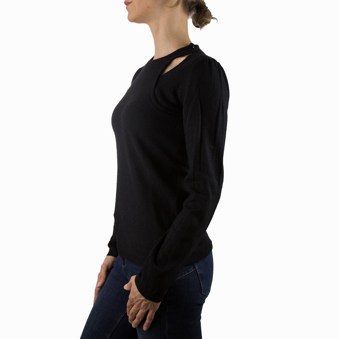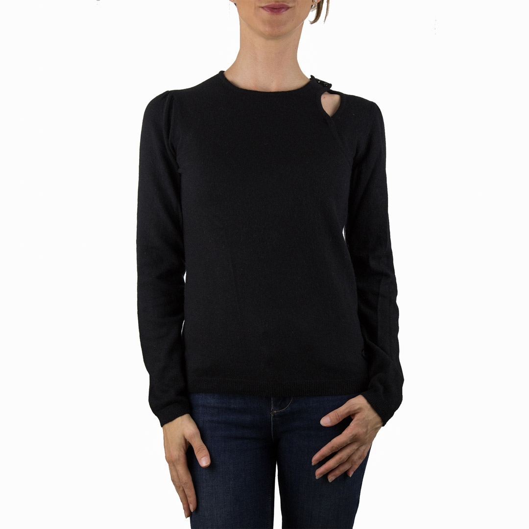 Maglia Armani in lana, girocollo, bottonatura sulla spalla sinistra
