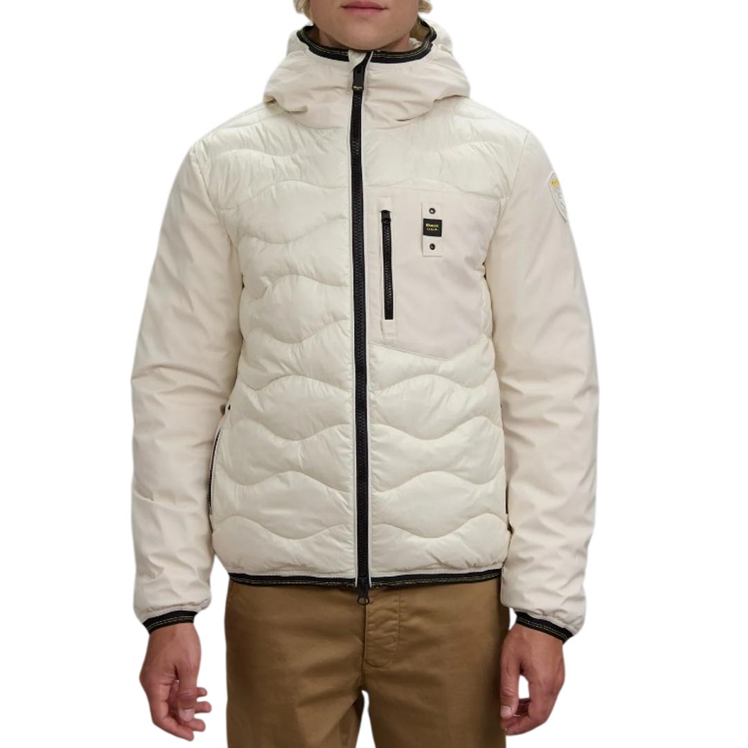 Field jacket sfoderata e super leggera in cotone e nylon. Chiusura frontale con cerniera nascosta da pattina con automatici. Sul colletto linguetta a chiusura con velcro. Cappuccio fisso in nylon nascosto da zip e ripiegato all’interno del colletto con coulisse. Quattro tasche frontali a soffietto con pattina ed automatico centrale, più piccole sul petto. Coulisse in vita. Caratteristico passante Blauer sul petto e Patch Blauer sulla manica.