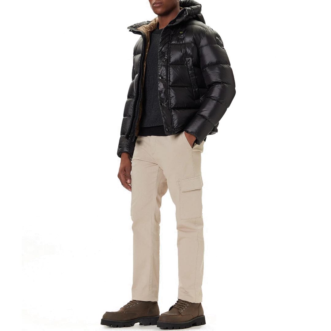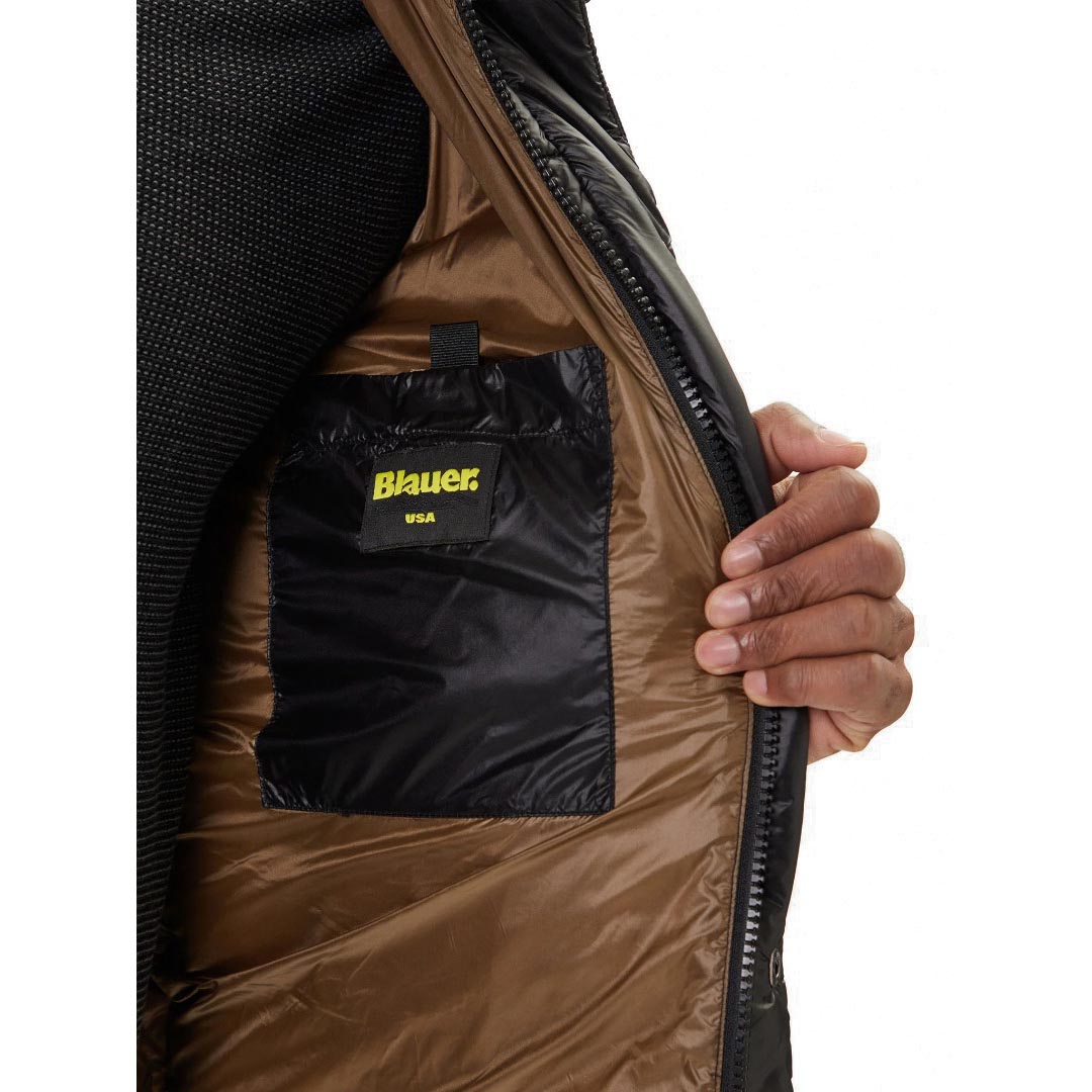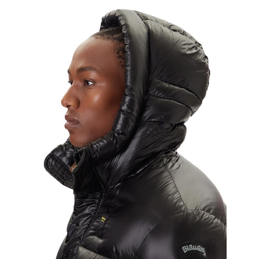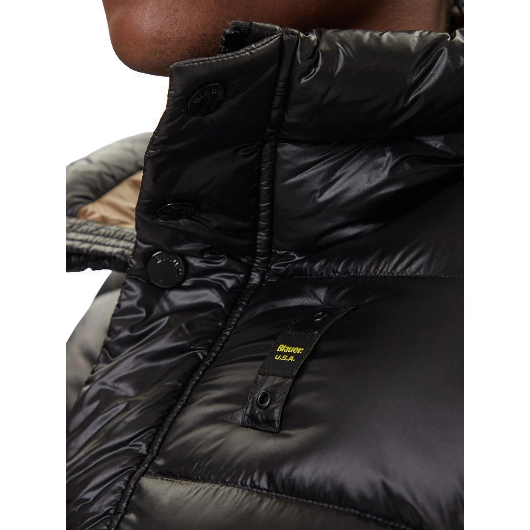Un capo iconico che unisce performance e stile. Realizzato in nylon lucido idrorepellente, questo piumino è trapuntato a righe orizzontali e imbottito con calda piuma naturale 90/10 (335 gr), che garantisce comfort termico senza risultare ingombrante. Il design è arricchito dall’interno in colore a contrasto, dal cappuccio fisso regolabile con coulisse e da dettagli funzionali che rendono il modello perfetto per affrontare la stagione fredda con praticità e personalità. Materiale esterno: nylon lucido idrorepellente Imbottitura: piuma naturale 90/10 (335 gr) Interno: nylon in contrasto colore Chiusura: zip centrale coperta da automatici Tasche esterne: chiuse da automatici Tasche interne: con velcro Fondo manica: doppio con elastico interno Coulisse regolabile sul fondo Logo Blauer: patch e passante iconico sul petto