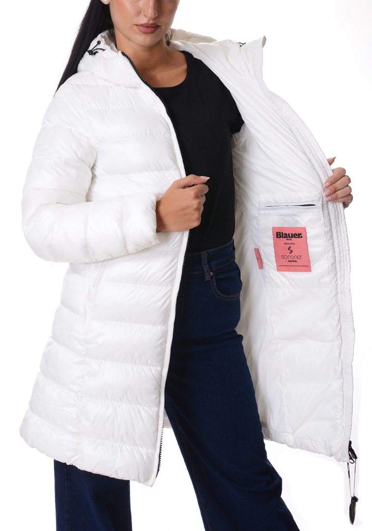 Giubbetto invernale lungo in nylon micro rip con cappuccio impunturato a linee orizzontali. Caratterizzano questo capo l’imbottitura ecologica, i colori alla moda e la vestibilità dall’effetto sfiancato. • Cappuccio fisso con coulisse • Tessuto con leggero motivo check • Foderato in contrasto • Imbottito ovatta Sorona® Aura • Chiusura con zip nascosta • Copri cursore sul collo • Tasche con zip nascosta e copri cursore • Tasche interne una con zip e l’altra con velcro • Patch e passante con logo