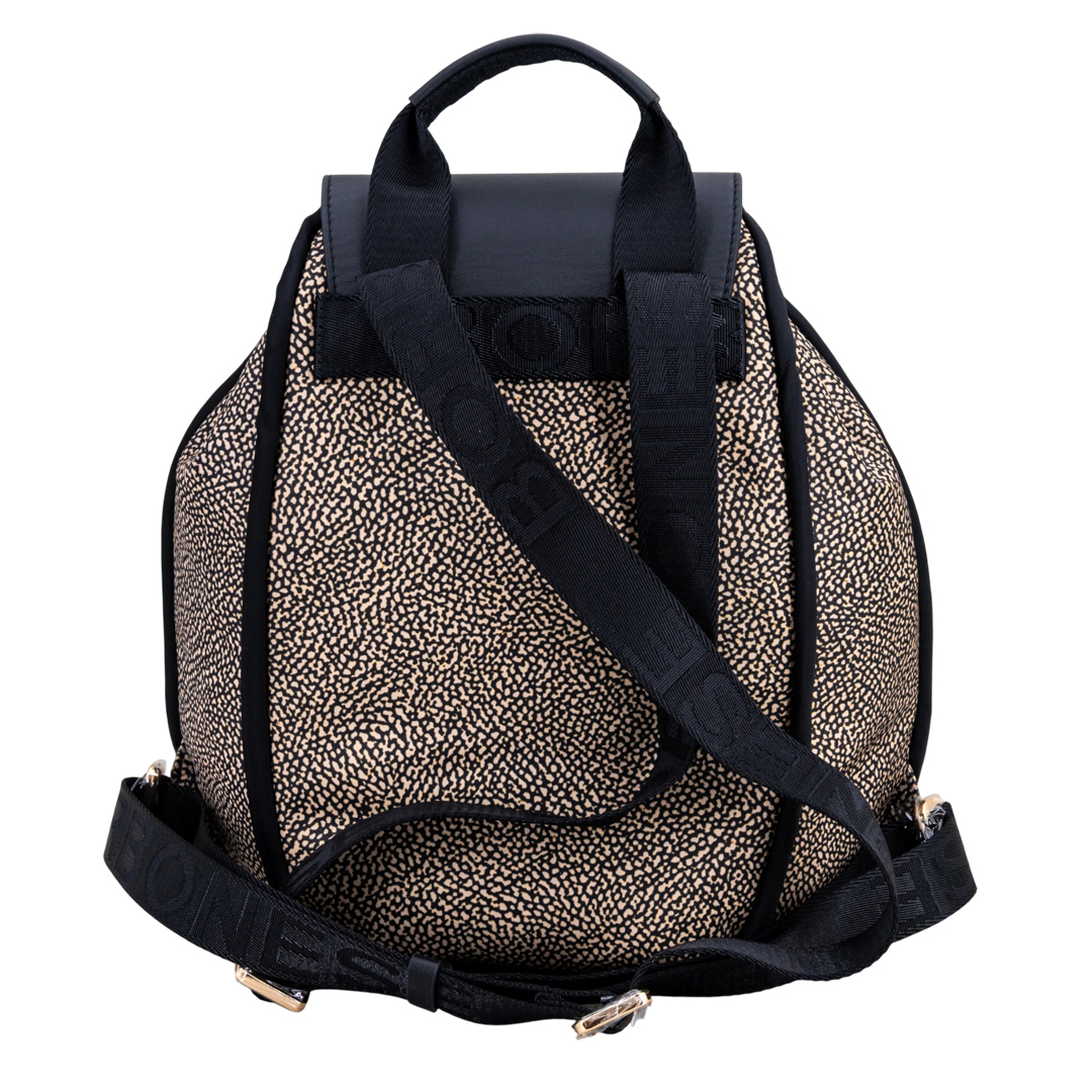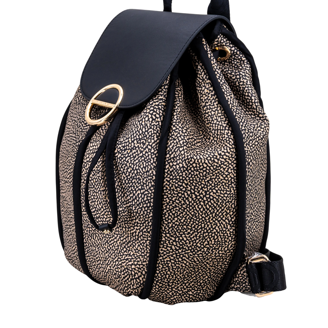 Borbonese zaino donna nuova collezione autunno inverno 2025, realizzato in tessuto riciclato op natural e dettagli in pregiata pelle. Ideale anche come borsa lavoro o per brevi viaggi. Chiusura con patta e coulisse, con pratico manico. Forma arrotondata a “ovetto”. Gli spallacci sono in tessuto logato e regolabili per un massimo comfort. Interno foderato in tessuto riciclato jacquard op. E’ la borsa perfetta per una donna che cerca praticità unita all’eleganza.